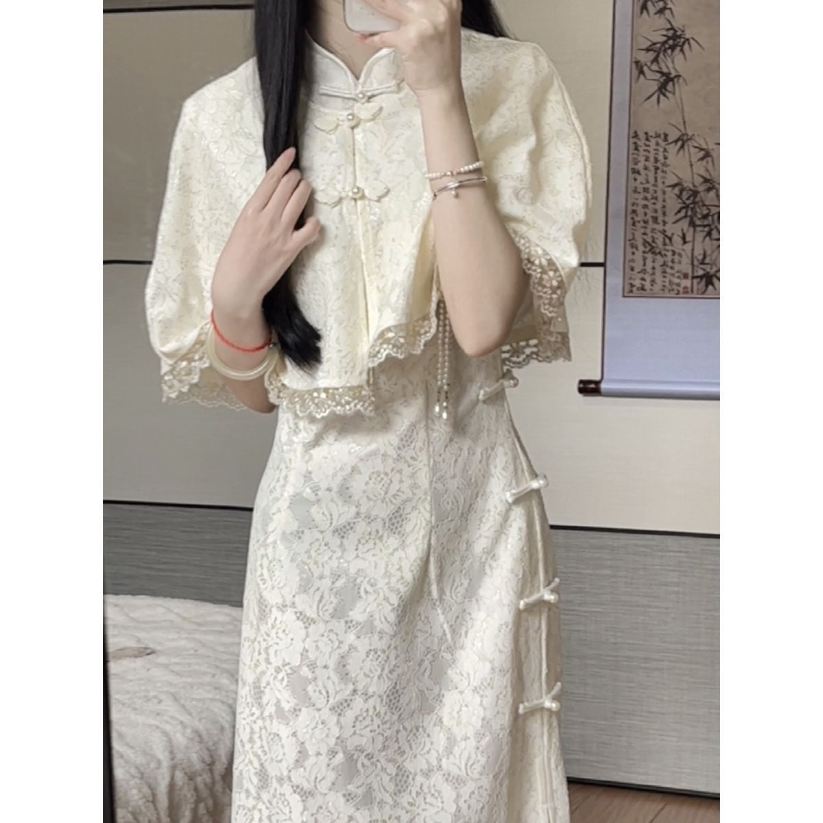 2024 Summer New New Chinese Style Temperament Elegant Cheongsam Improved Edition Shawl dress Two-piece Set for Women