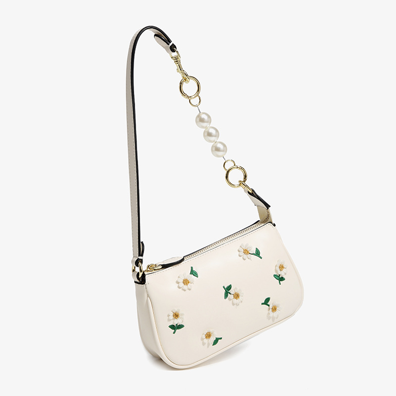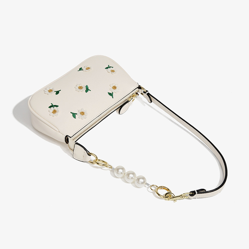 | nameOriginal | 2024 Summer New Niche Design Embroidered Daisy Mahjong Women's Bag Pearl Chain Portable Underarm Baguette Bag |