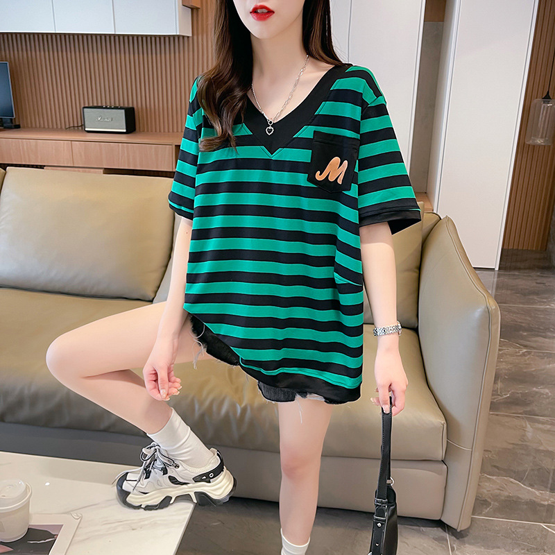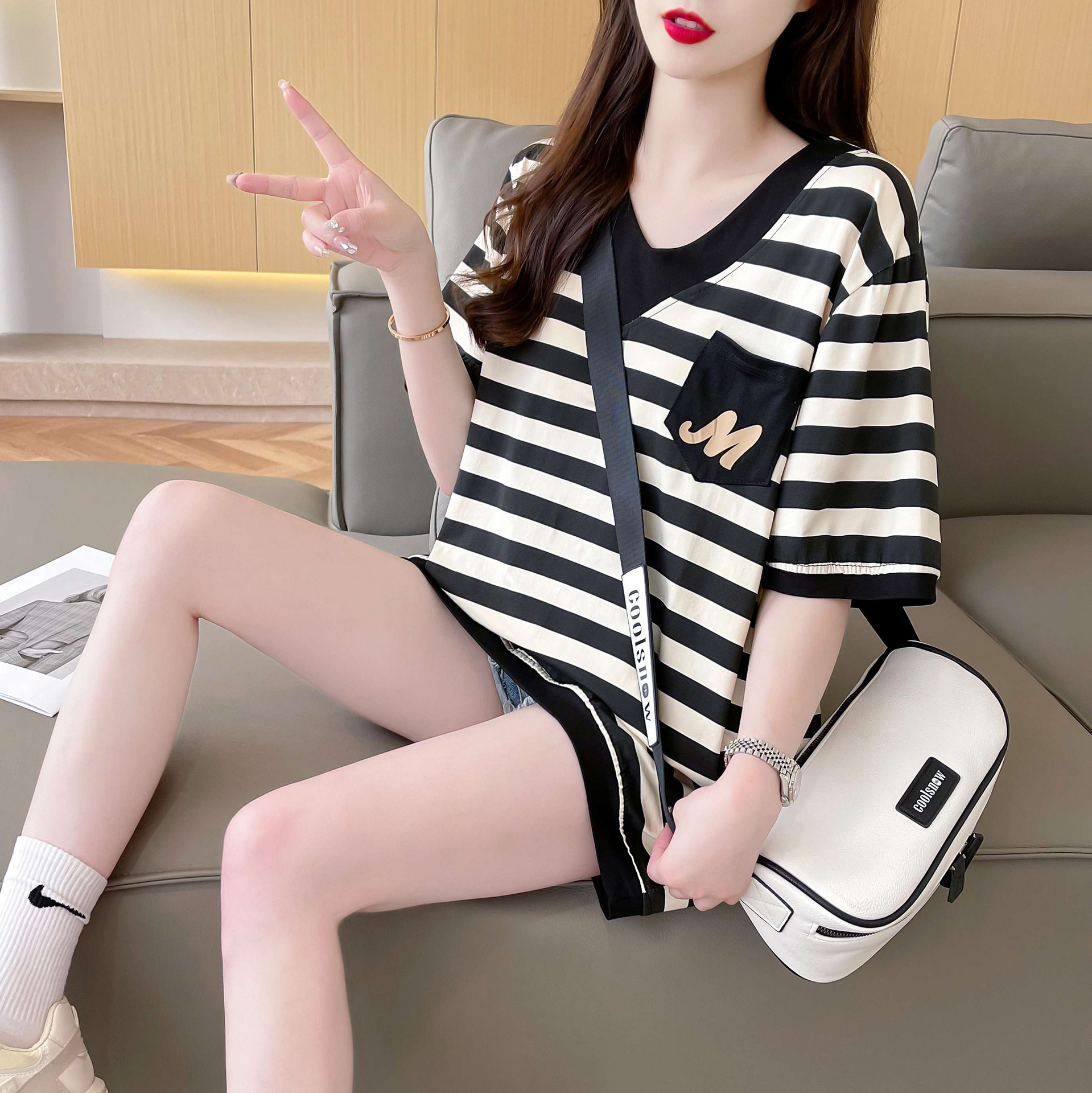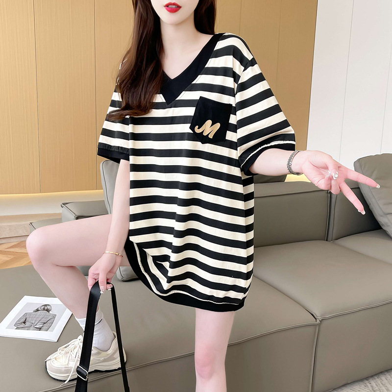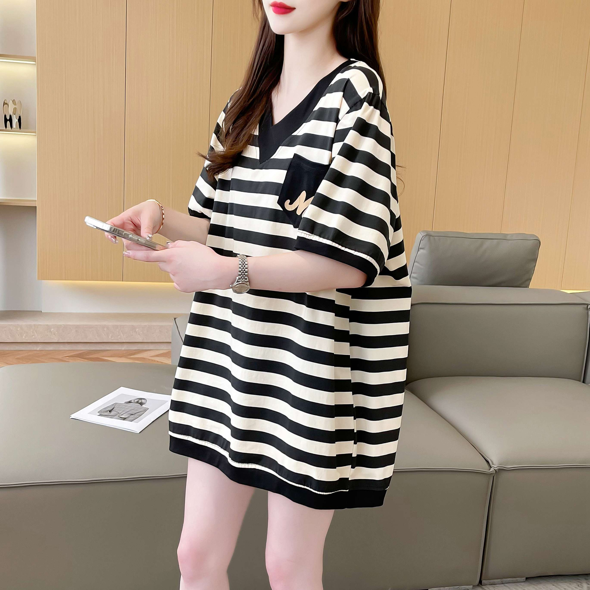 | nameOriginal | 2024 Summer New plus size Chubby Short-sleeved Shirt Women's Loose Age-reducing Slimming Cotton Striped Collar Clothes |