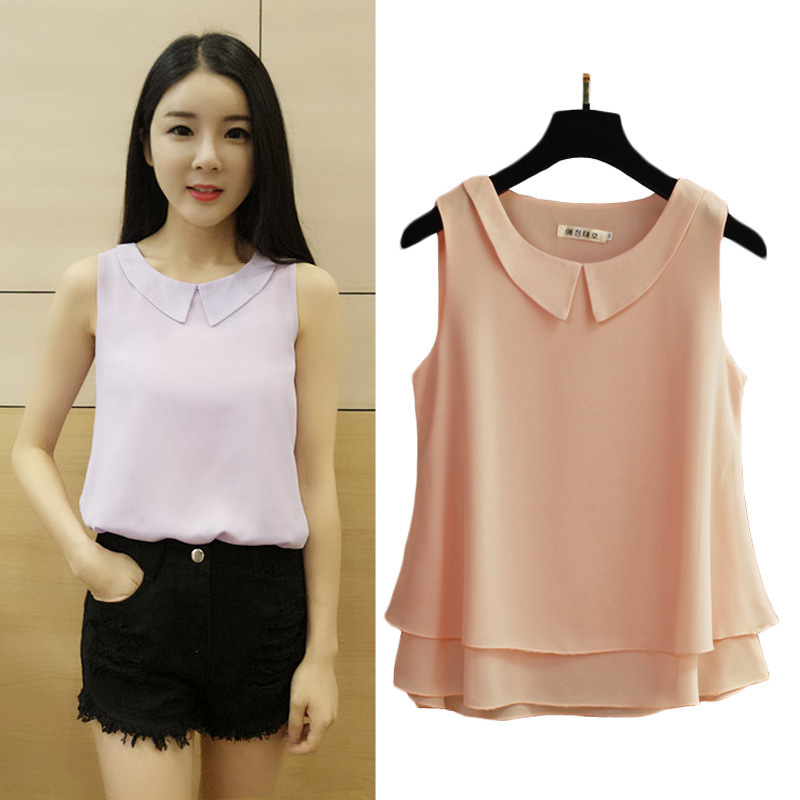 | nameOriginal | 2024 summer new plus size women's chubby girl doll collar chiffon shirt loose slim sleeveless top women's vest |