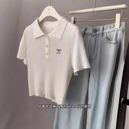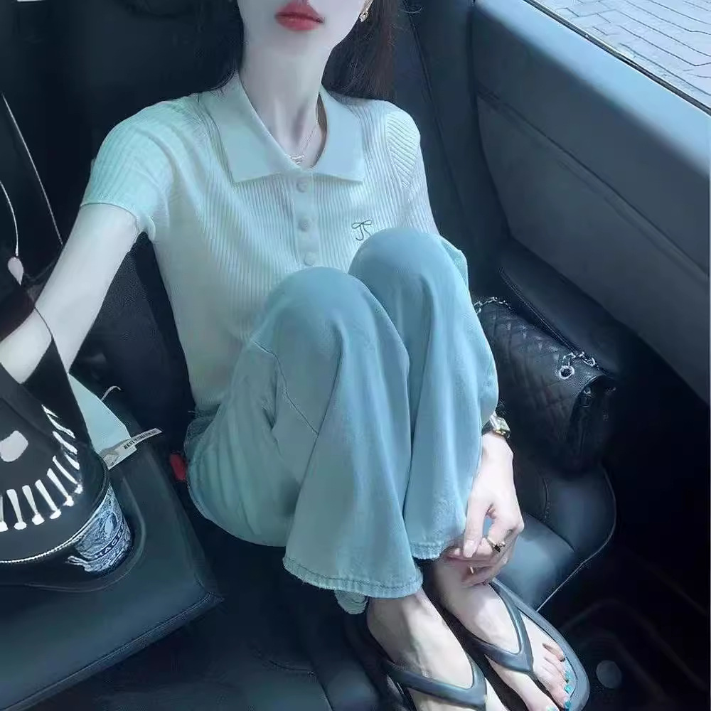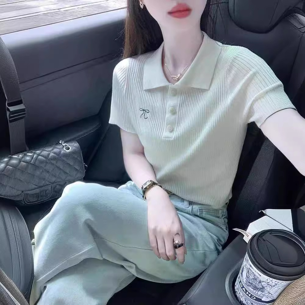 | nameOriginal | 2024 Summer New Polo Collar Knitted Top Women's Embroidered Bow Slim-fit Slimming Elegant Knitted Short-sleeved Women |