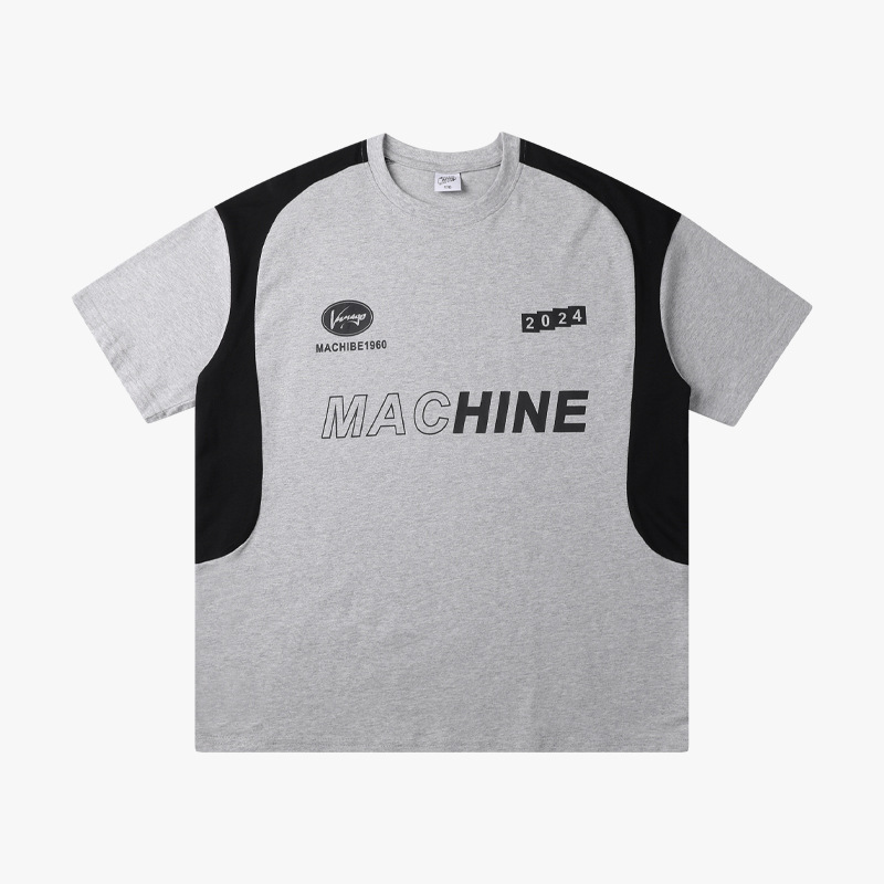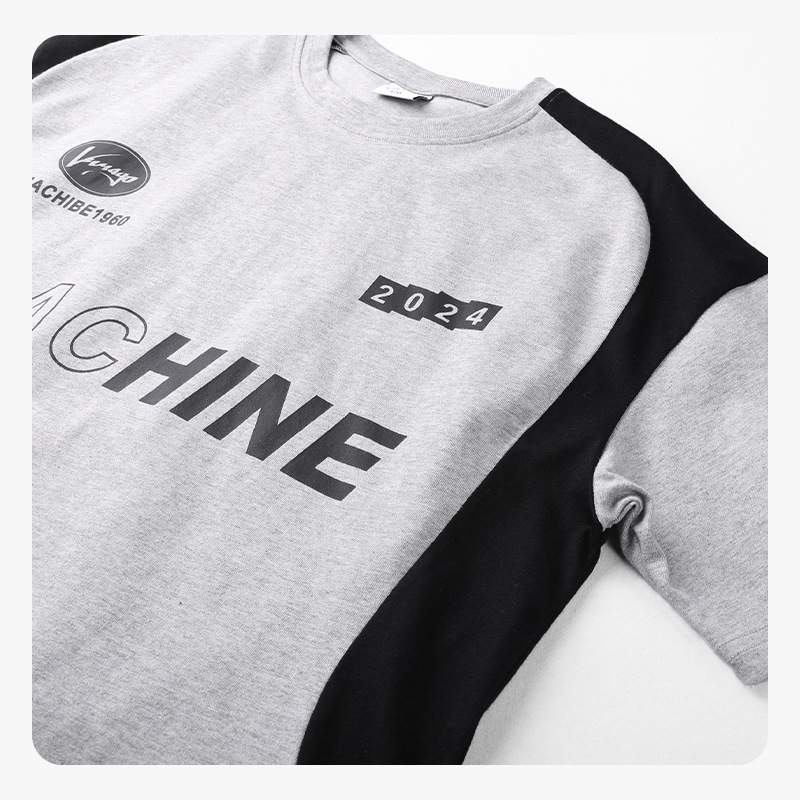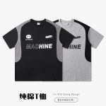 2024 Summer new pure cotton heavy medium and large boys' T-shirt MACHINE printed fashion brand contrast color casual loose t