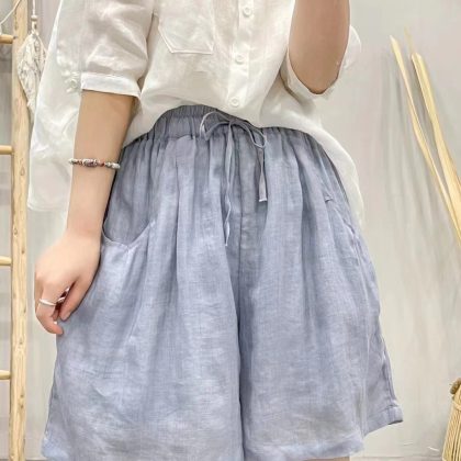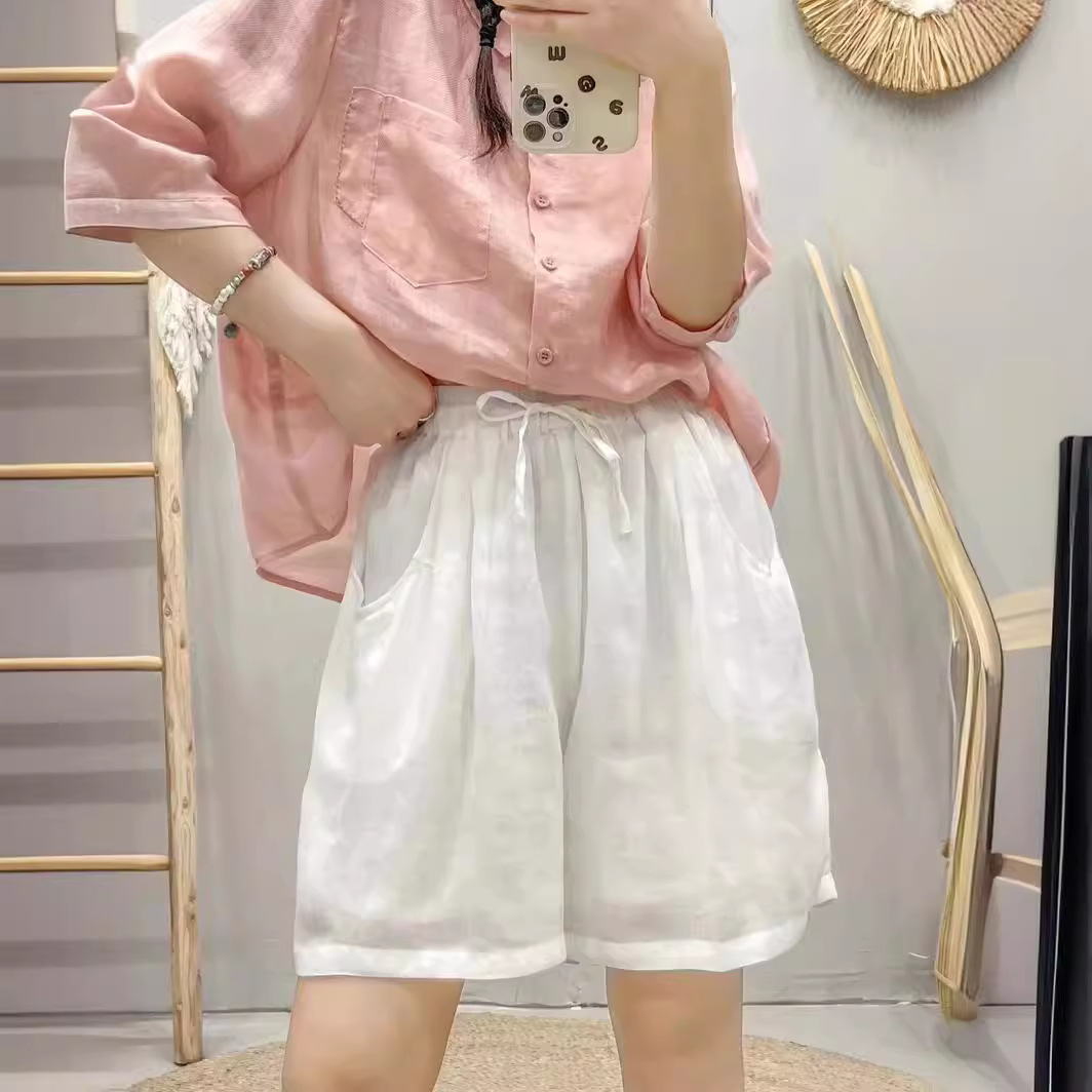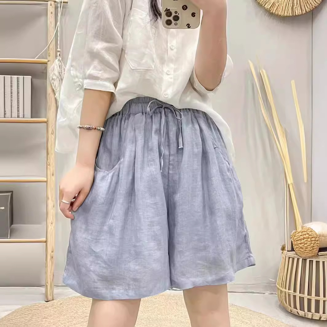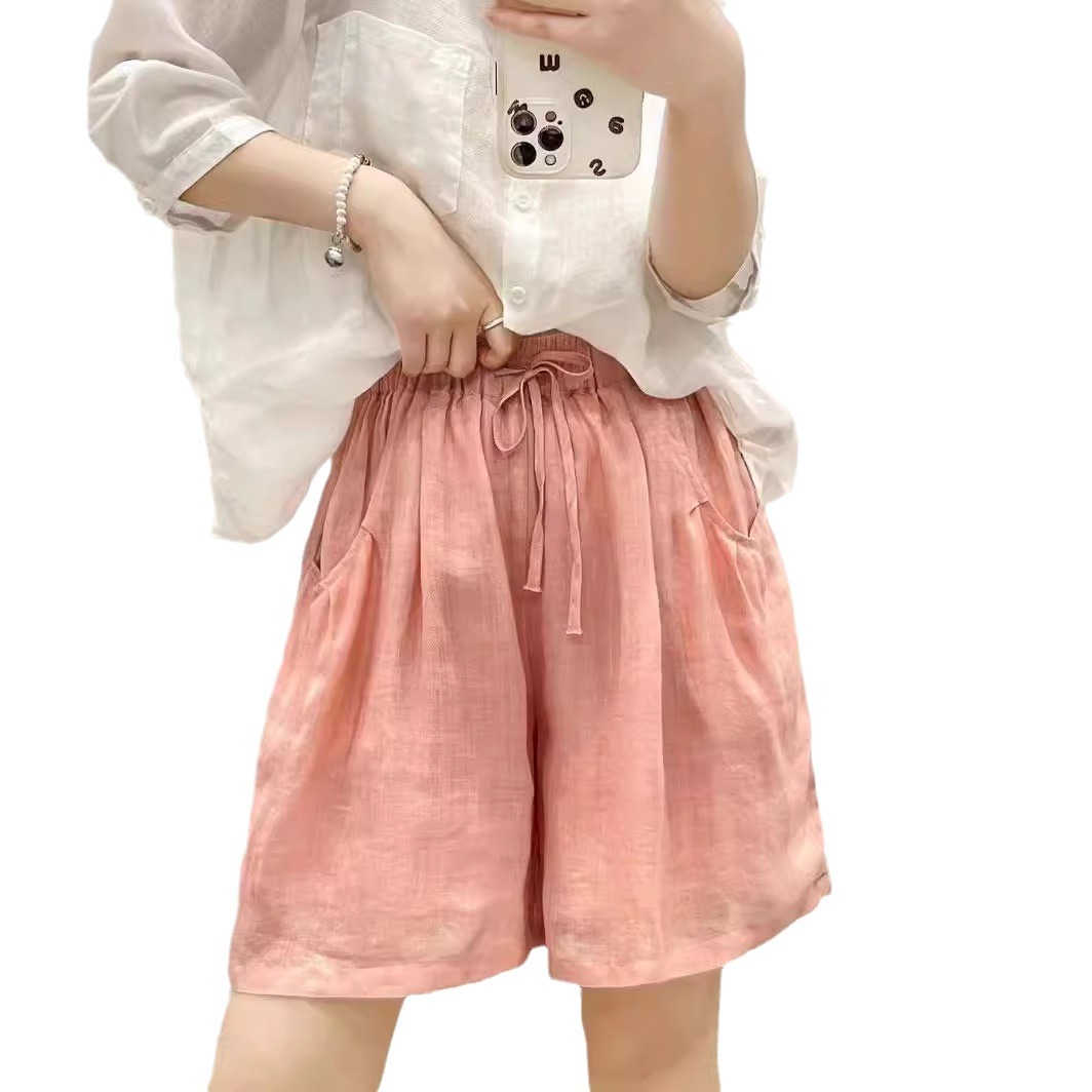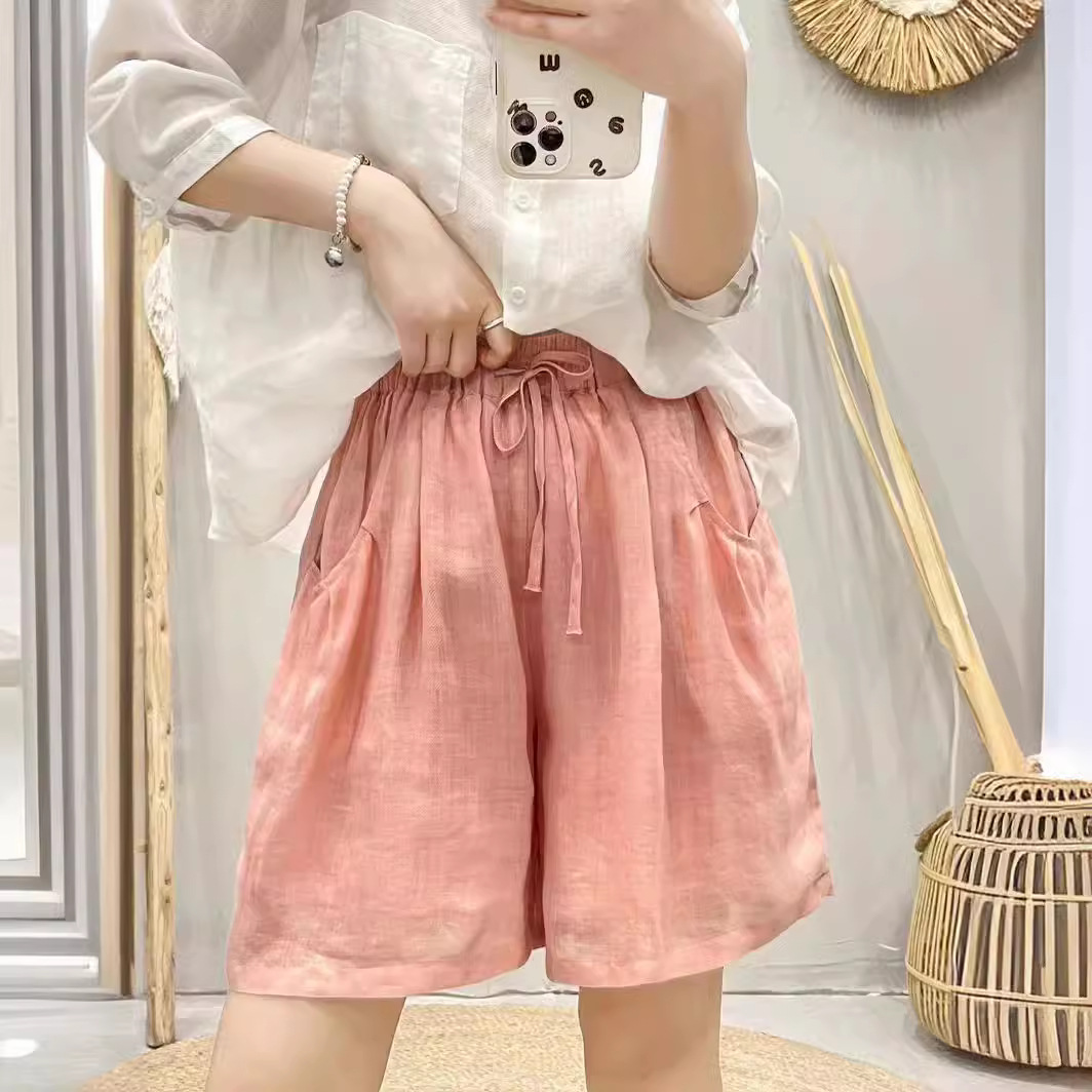 | nameOriginal | 2024 Summer New Ramie Shorts Women's Thin Loose Solid Color Artistic Fresh Drawstring Loose Casual Pants |