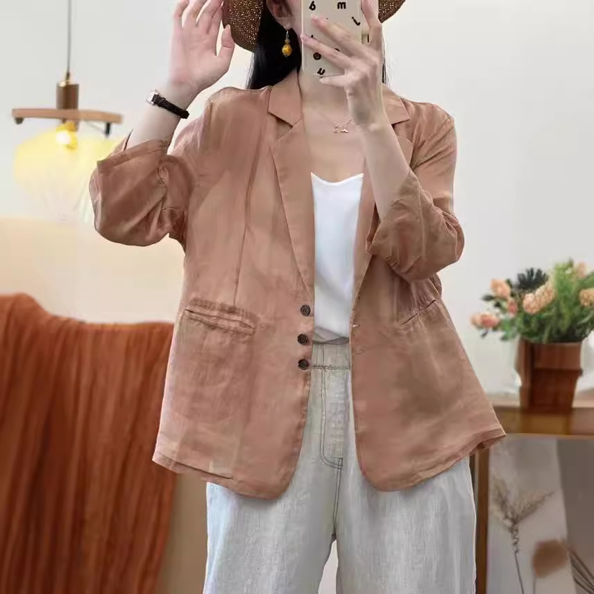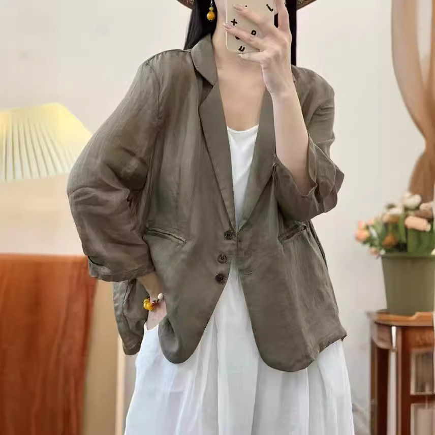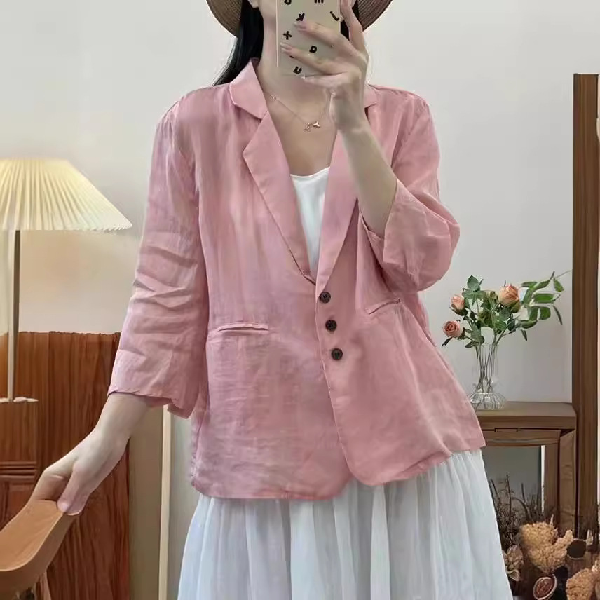 | nameOriginal | 2024 Summer New Ramie Suit Women's Simple All-match Seven-point Sleeve Loose Thin Solid Color Small Suit Jacket |