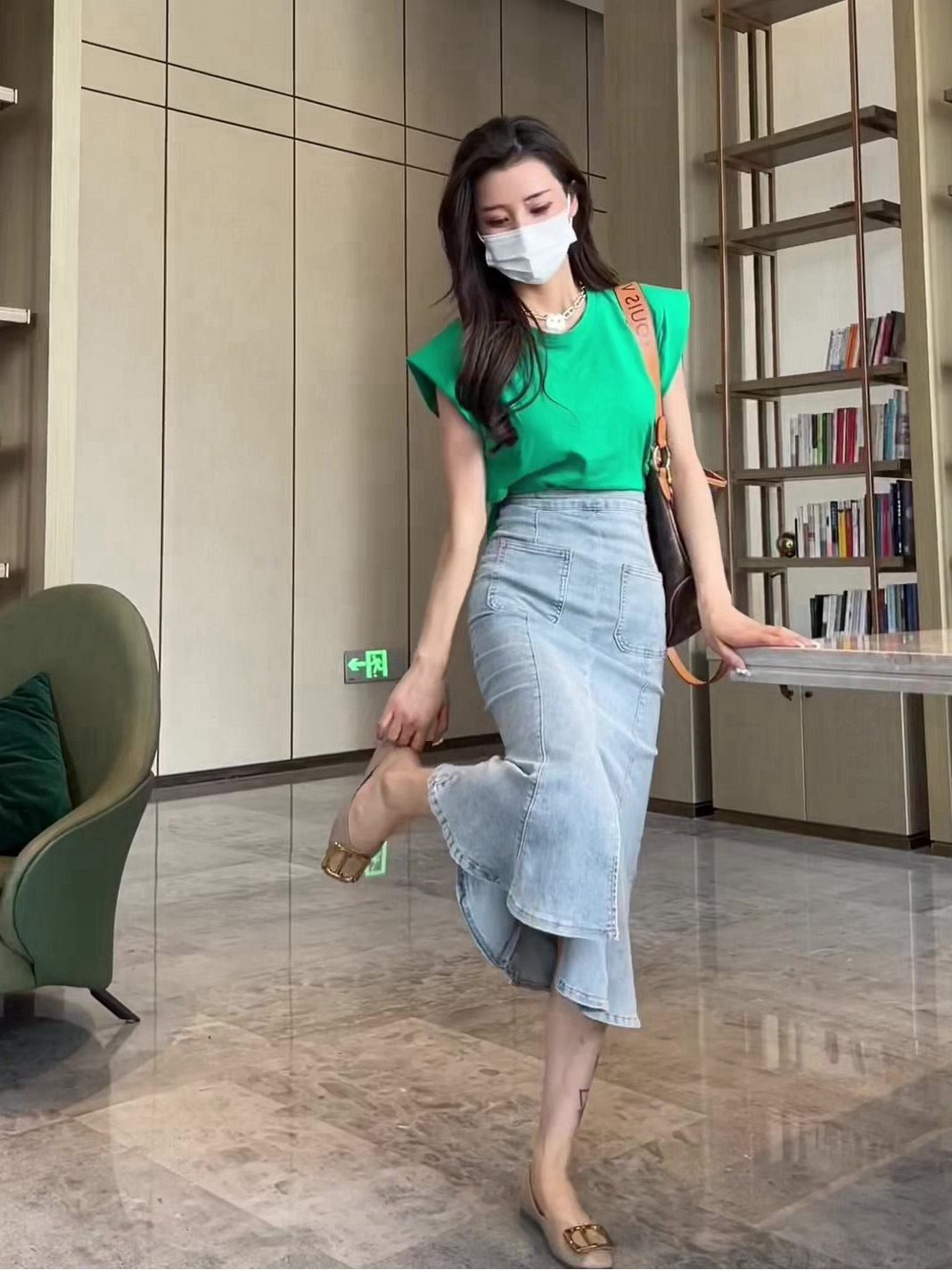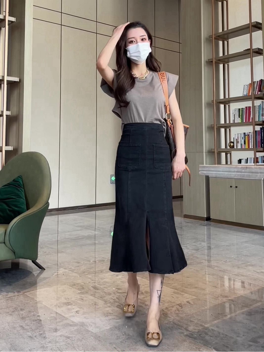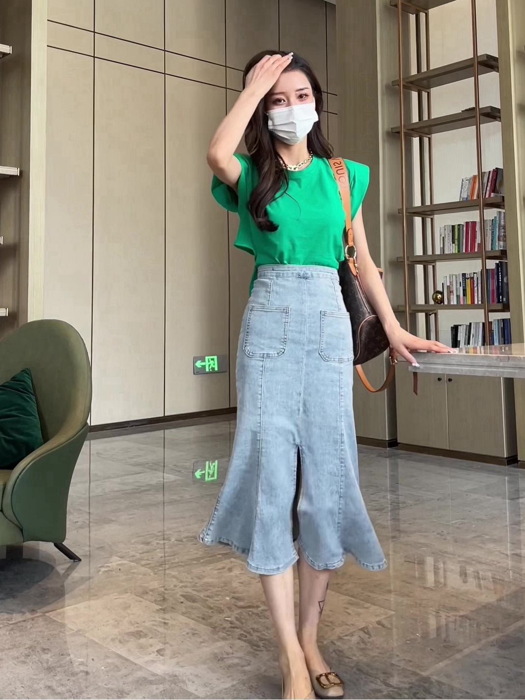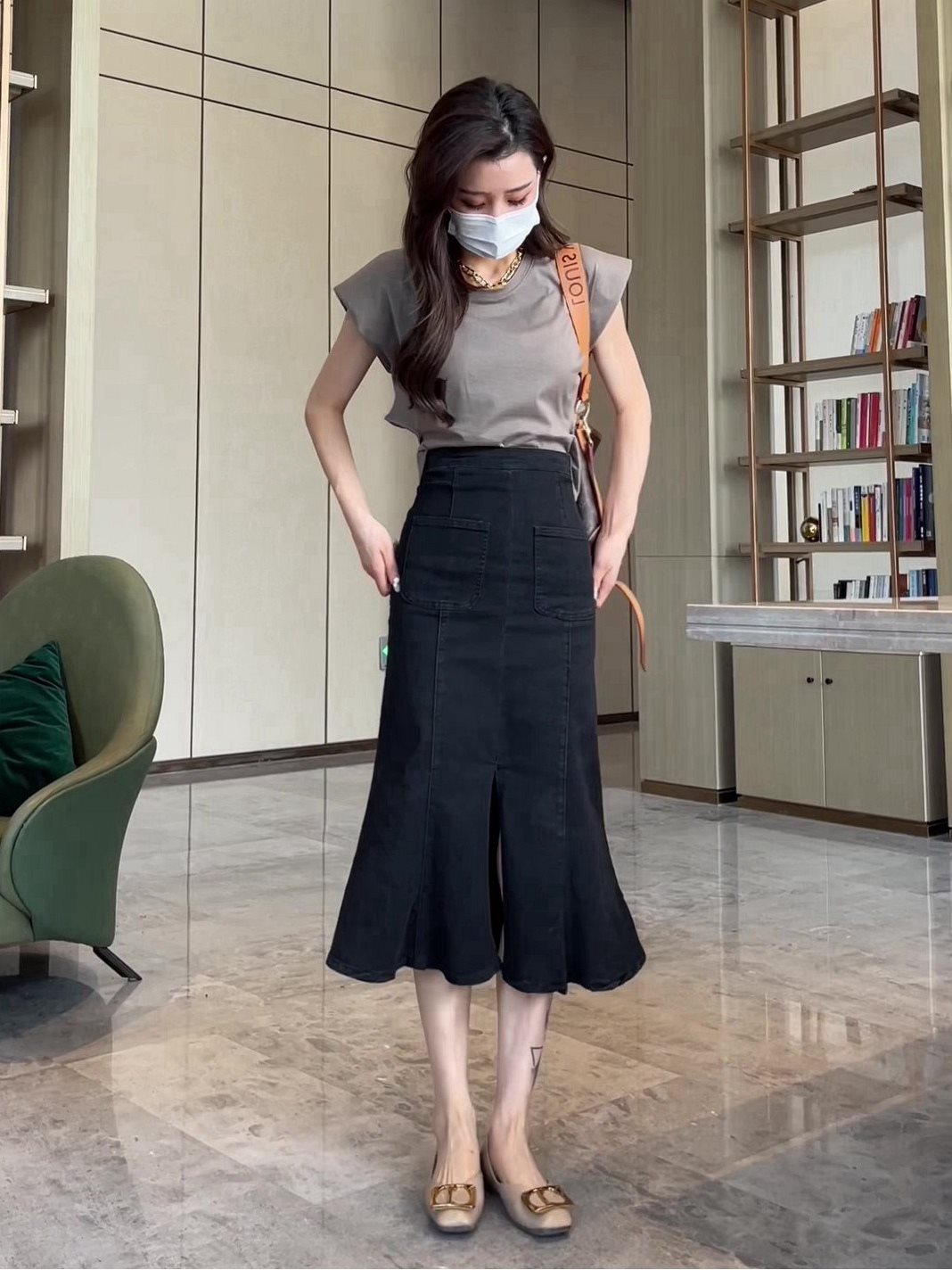 | nameOriginal | 2024 Summer New Retro High Waist Slim Denim Skirt Women's Design Split Fishtail Step Skirt |