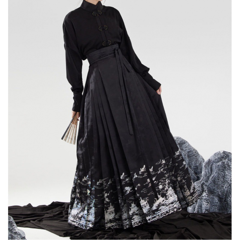 | nameOriginal | 2024 Summer New Retro National Fashion Elegant Chinese Style Improved Hanfu Han Element All-match Lace-up Horse Face Skirt |