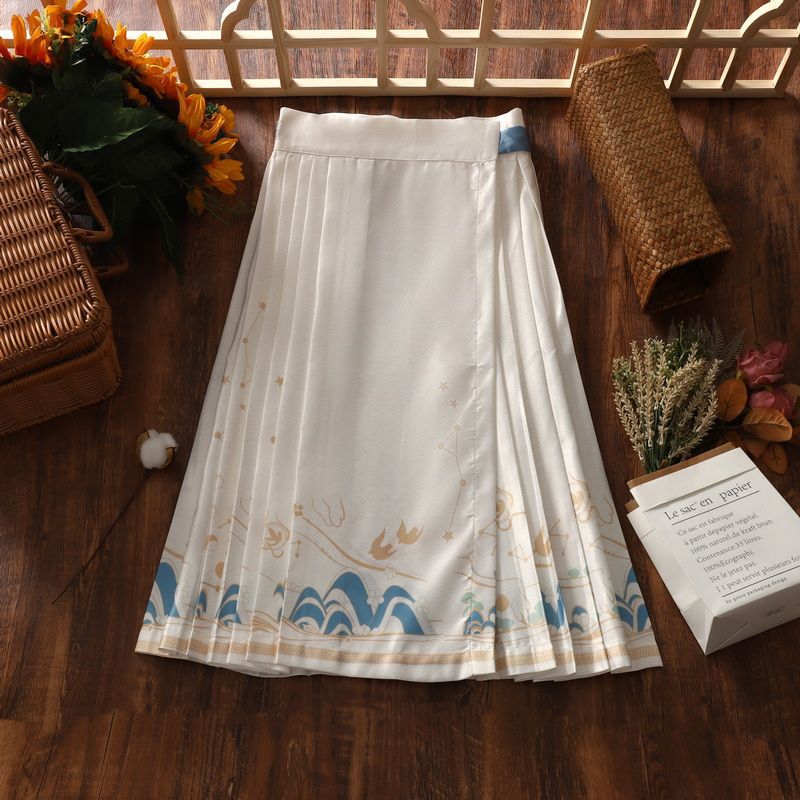 | nameOriginal | 2024 Summer New Retro National Fashion Girl's Chinese Style Improved Hanfu Han Yuan Su Ming Mid-Length Horse Face Skirt |