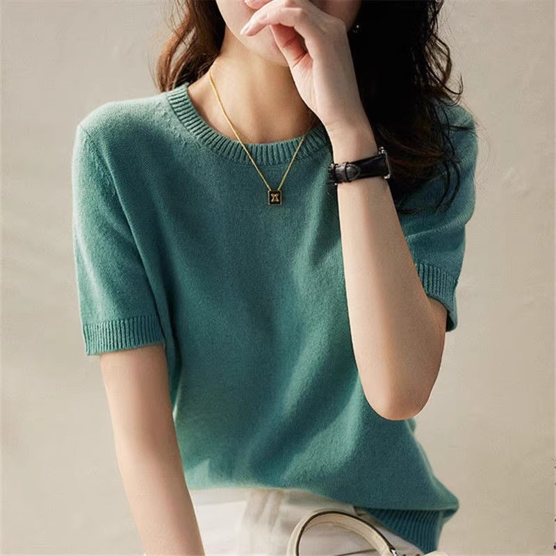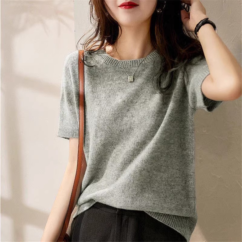 | nameOriginal | 2024 Summer New Round Neck Pullover Short-sleeved Sweater Women's Loose Korean-style Half-sleeved Knitted Base Shirt Thin T-shirt |