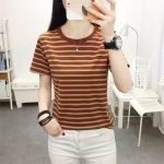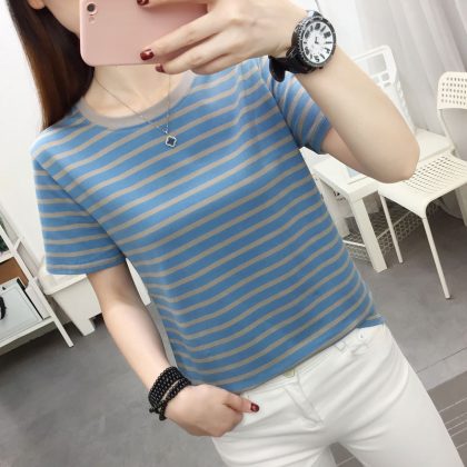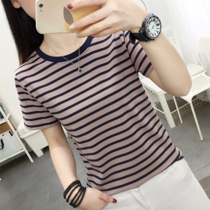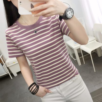 2024 Summer New Round Neck Striped Short Sleeve Women’s Casual Loose All-match Classic Top Trendy