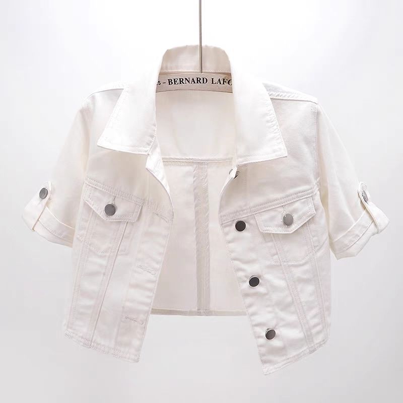 | nameOriginal | 2024 Summer New Short-sleeved Denim Coat Women's Short Thin Small Shawl Top Waistcoat Outer Cardigan White |