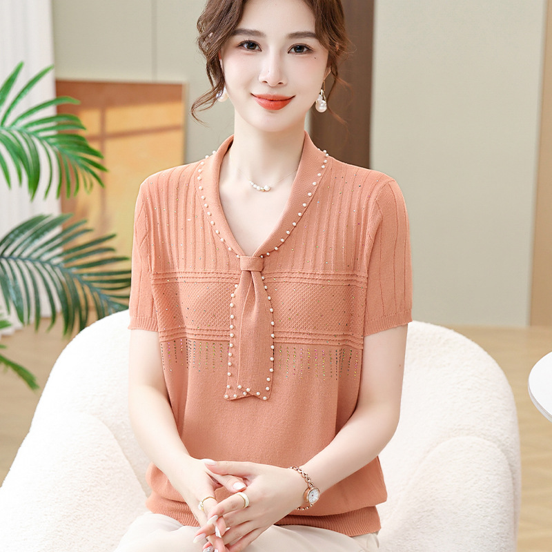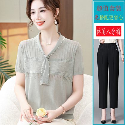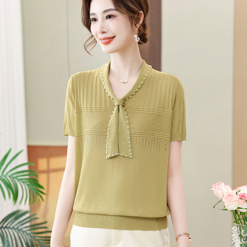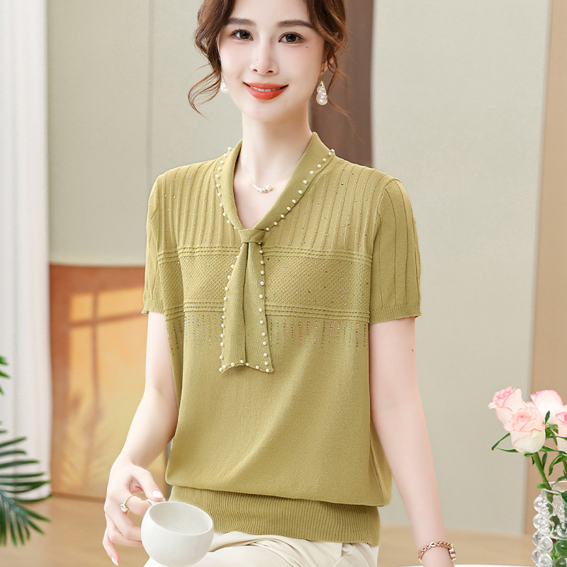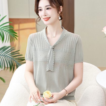 | nameOriginal | 2024 Summer New Short-sleeved T-shirt Knitted Shirt Women's Ice Silk Western Style Top Women's Women's Sweatshirt |