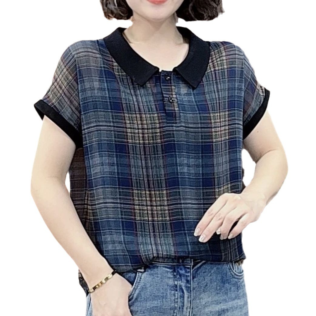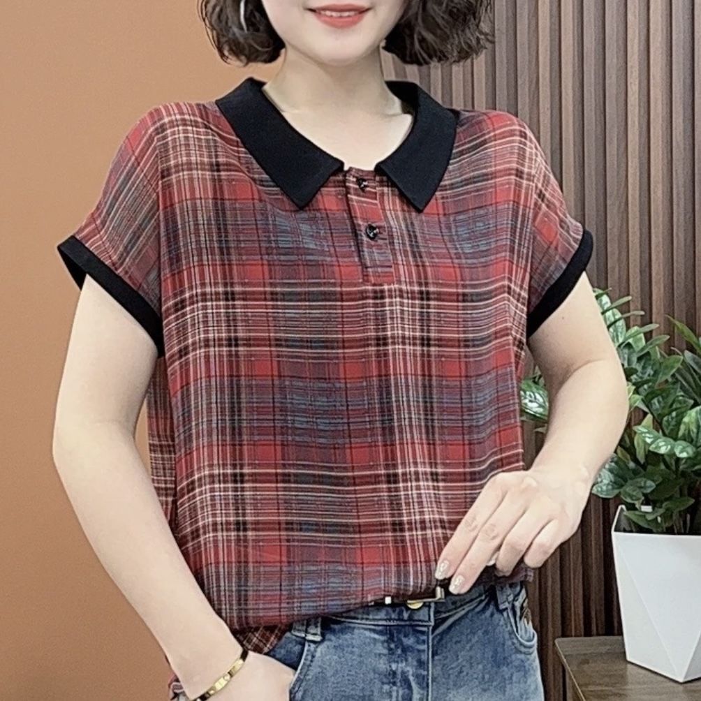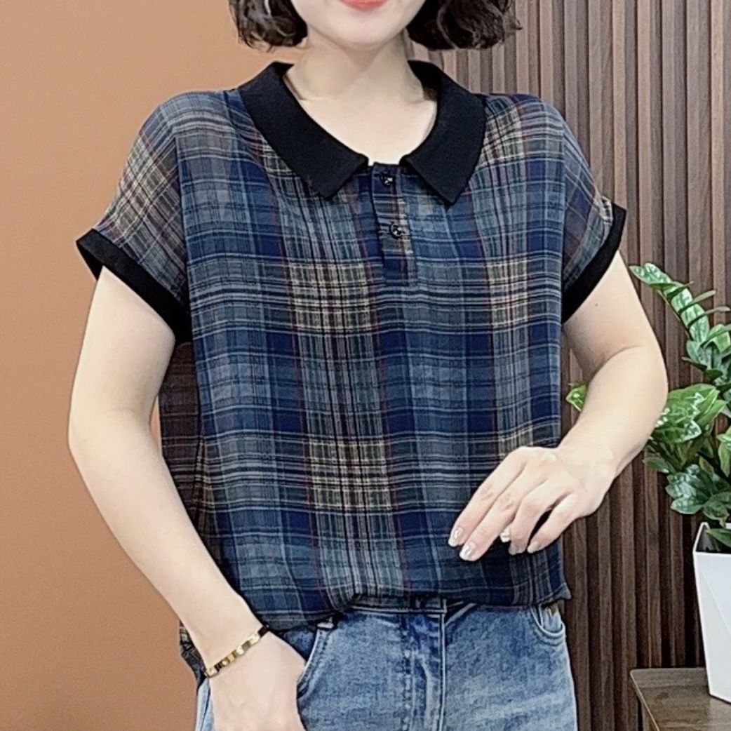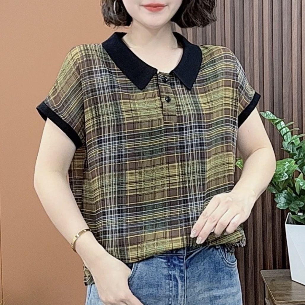 | nameOriginal | 2024 Summer New Short-sleeved T-shirt Women's Fashionable Age-reducing Plaid Shirt Loose Casual Slimming Doll Collar Top |