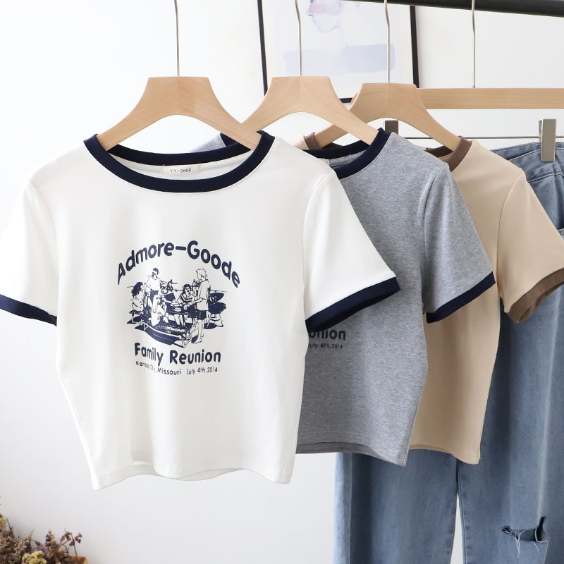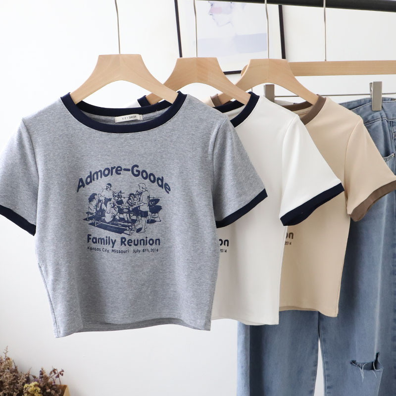 | nameOriginal | 2024 summer new short top Korean women's vintage printed edging cotton short sleeve T-shirt 6813 |