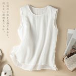 2024 Summer New Simple All-match Ramie Texture Double-layer Sleeveless T-shirt Temperament Single Wear