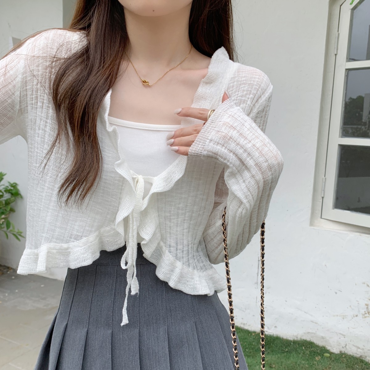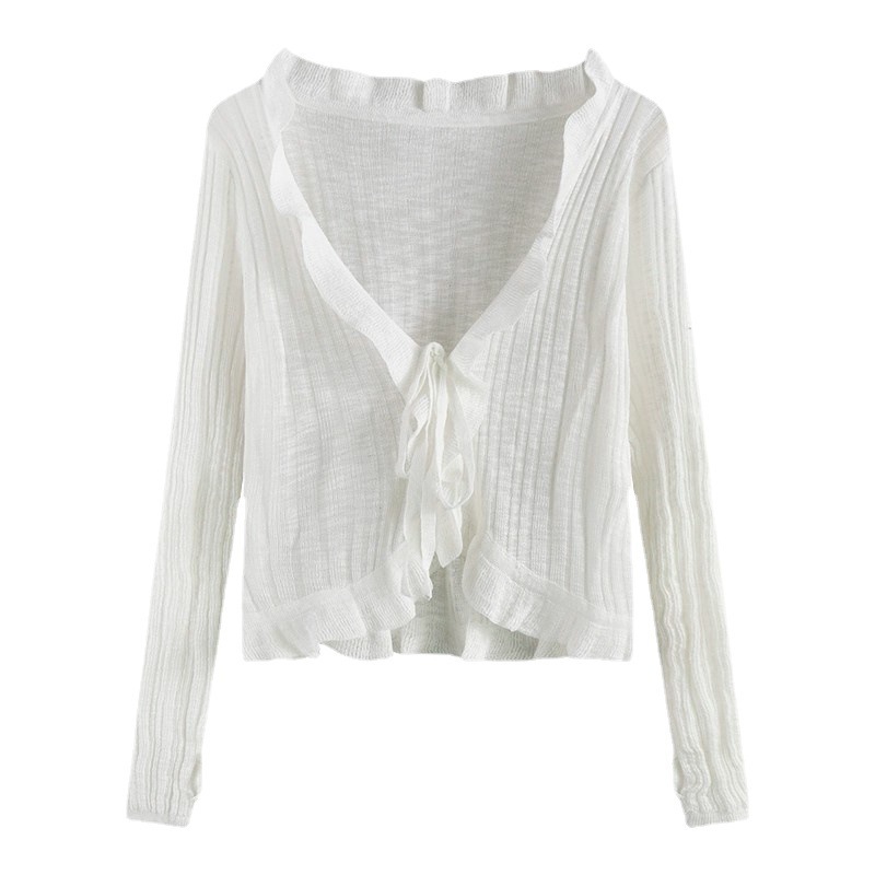 | nameOriginal | 2024 Summer New Slim-fit Korean Style Sweet Lace Strap Design Sense Sunscreen Knitted Long-sleeved Cardigan Women's Top |