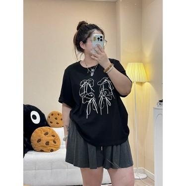 2024 Summer New Slimming All-match Casual Fashion Design Sense plus size T-shirt Pomelo Red