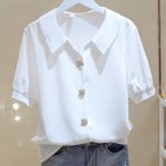 | nameOriginal | 2024 Summer New Solid Color V-neck Chiffon Shirt Women's Short-sleeved Loose Korean Style Elegant All-match Small Top |