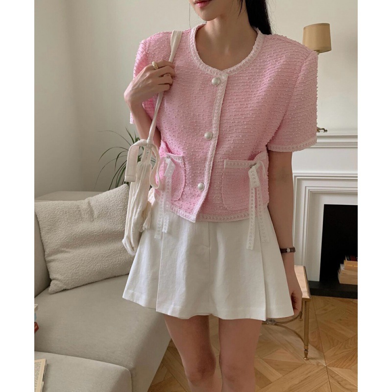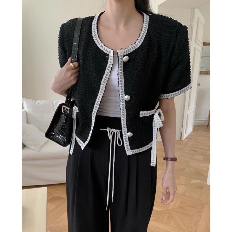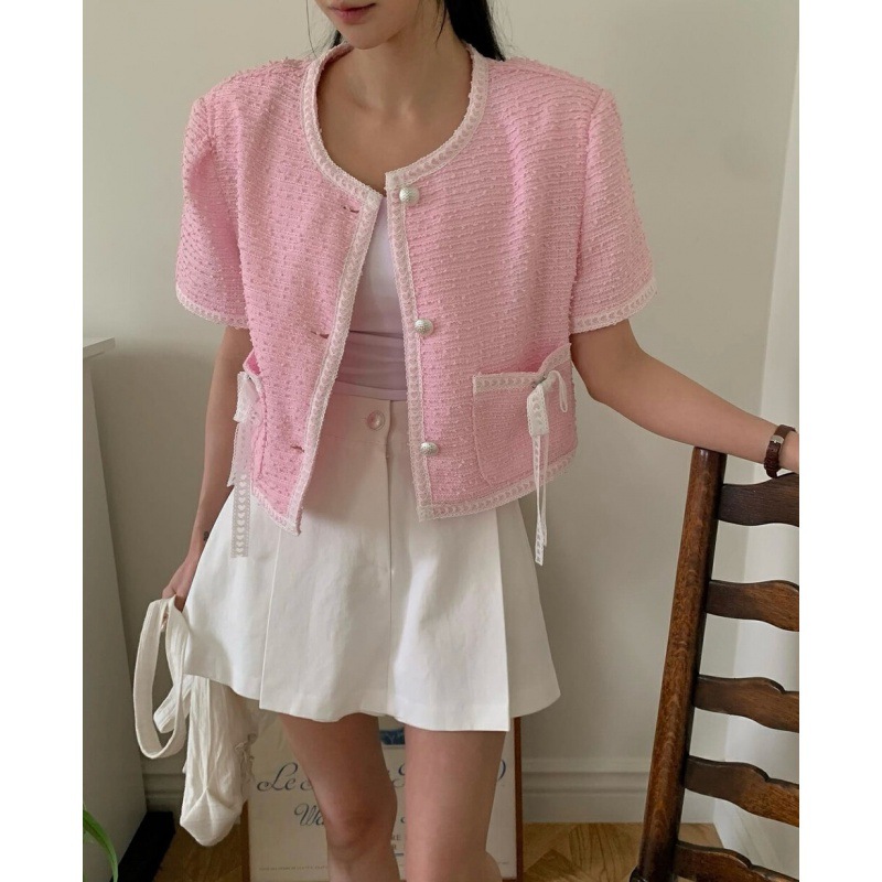 | nameOriginal | 2024 Summer New South Korea Socialite Elegant Chanel Style Short Coat Bow Embellished Pocket Cardigan Top |