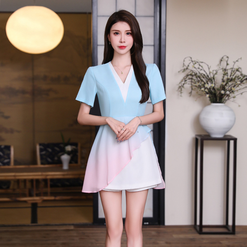 2024 Summer New Spa Ear-picking Massage Fashion Slimming suit Foot Massage Club Technician dress