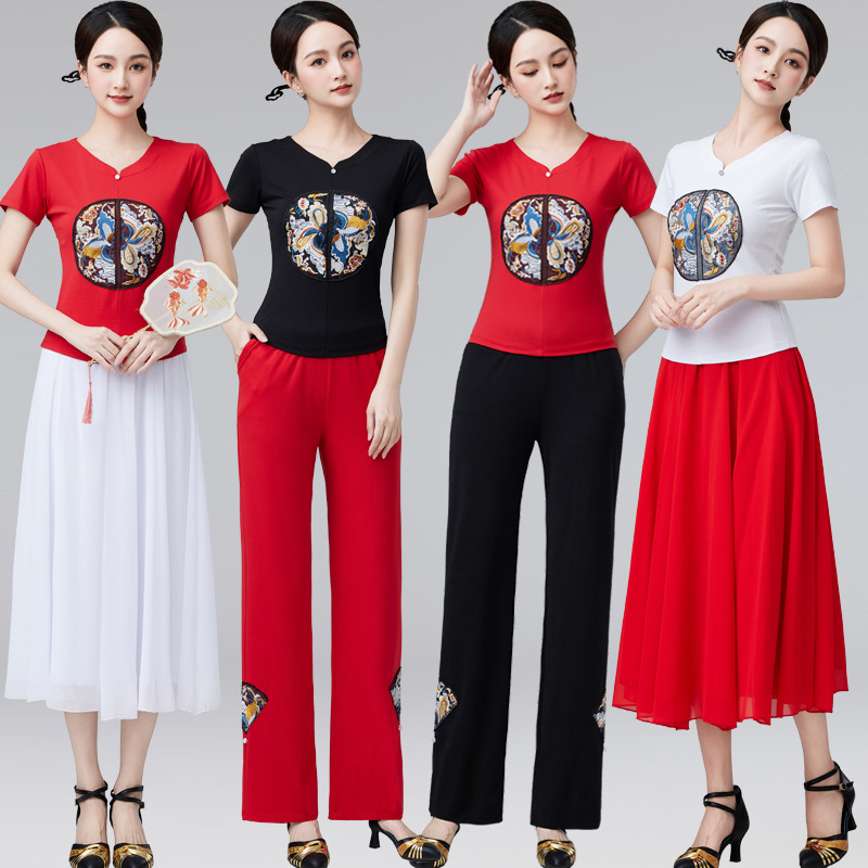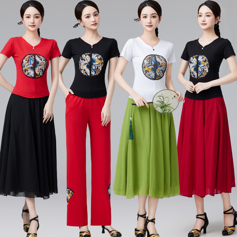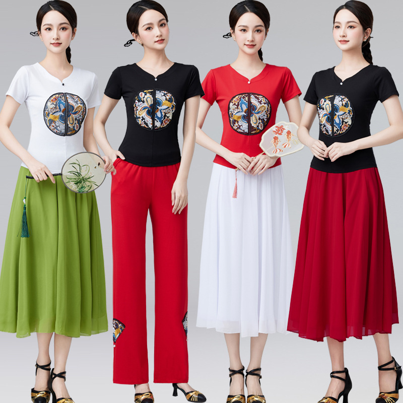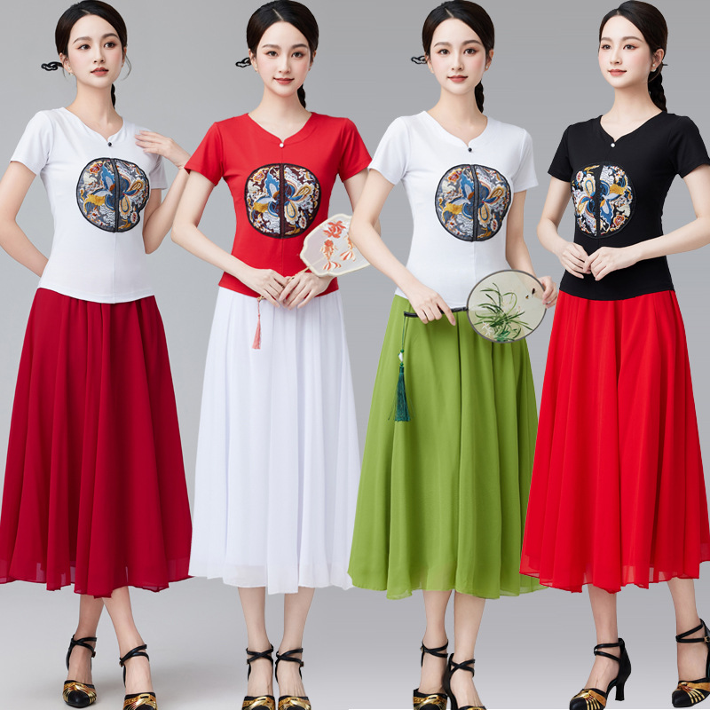 | nameOriginal | 2024 Summer New Square Dance National Style Embroidery Slimming All-match Short-sleeved Chiffon Dress Set Ethnic Style Group Clothes |