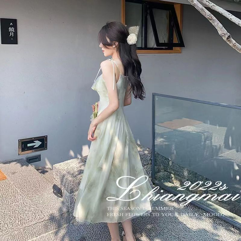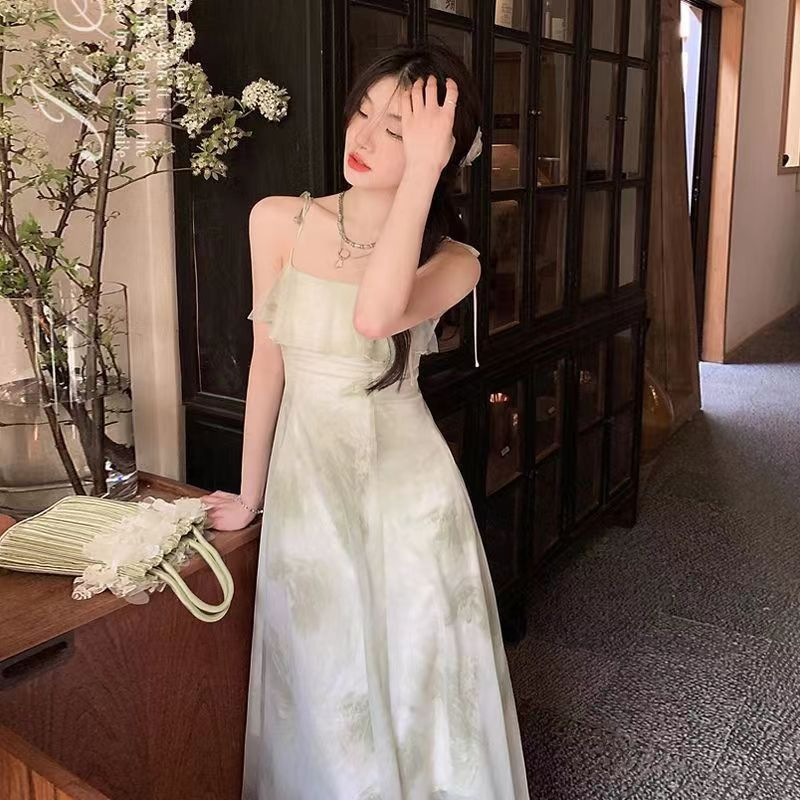 | nameOriginal | 2024 Summer new strap dress fairy ruffled floral sleeveless Lady royal sister style sexy dress |