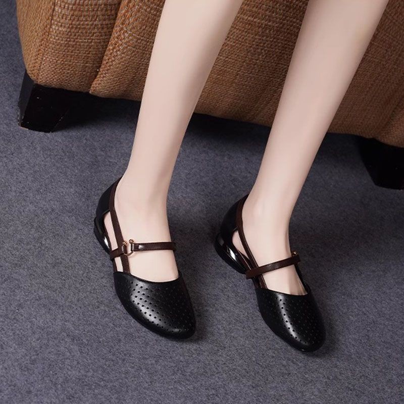 | nameOriginal | 2024 Summer New Style Baotou Sandals Women's Genuine Leather Hollow Flat Women's Shoes Low Heel Soft Leather Soft Bottom Round toe Mother's Shoes |
