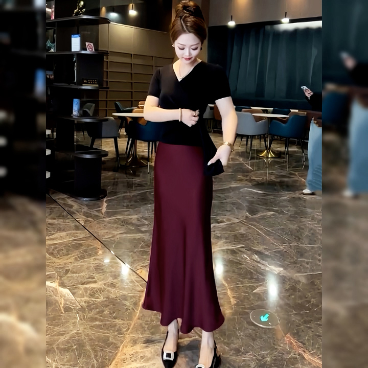 | nameOriginal | 2024 Summer New Style Elegant Acetate Satin Fishtail Skirt Women's Slimming High Waist A- line Hip Long Skirt |