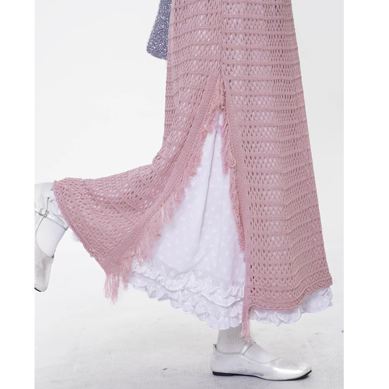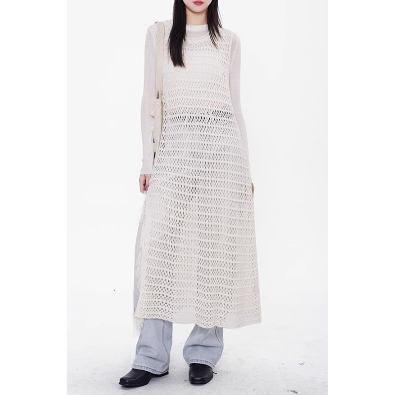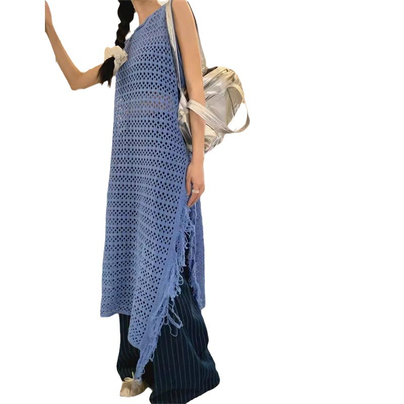 | nameOriginal | 2024 Summer New Style Lazy Style Split Round Neck Sleeveless Long Korean Style All-match Hollow-out Knitted Stacked Sundress |
