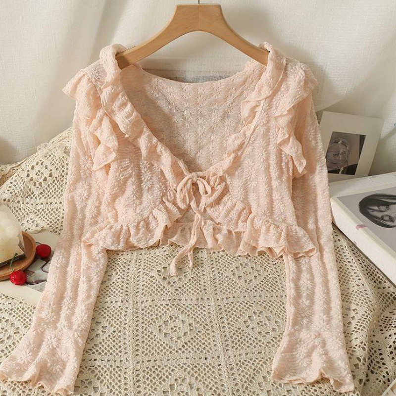 | nameOriginal | 2024 Summer New Style Outer Cardigan Ruffled Lace Sunscreen Cardigan Women's Short Small Shawl Blouse |