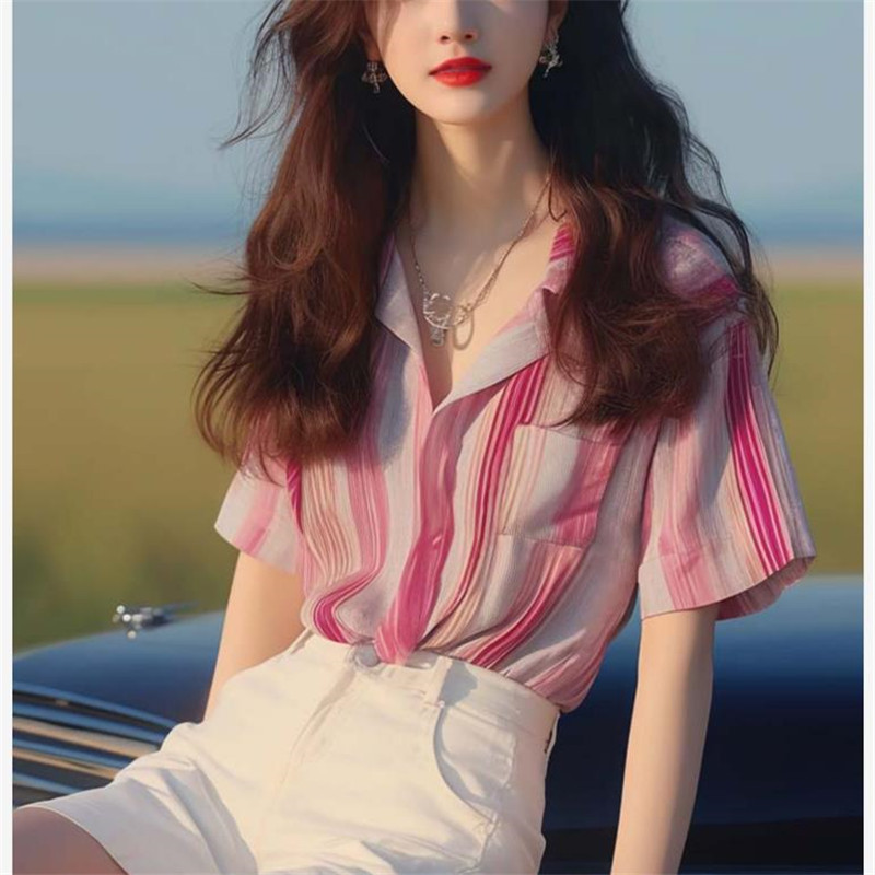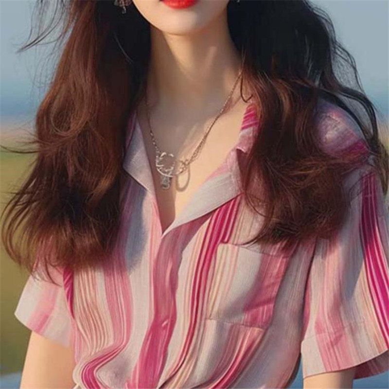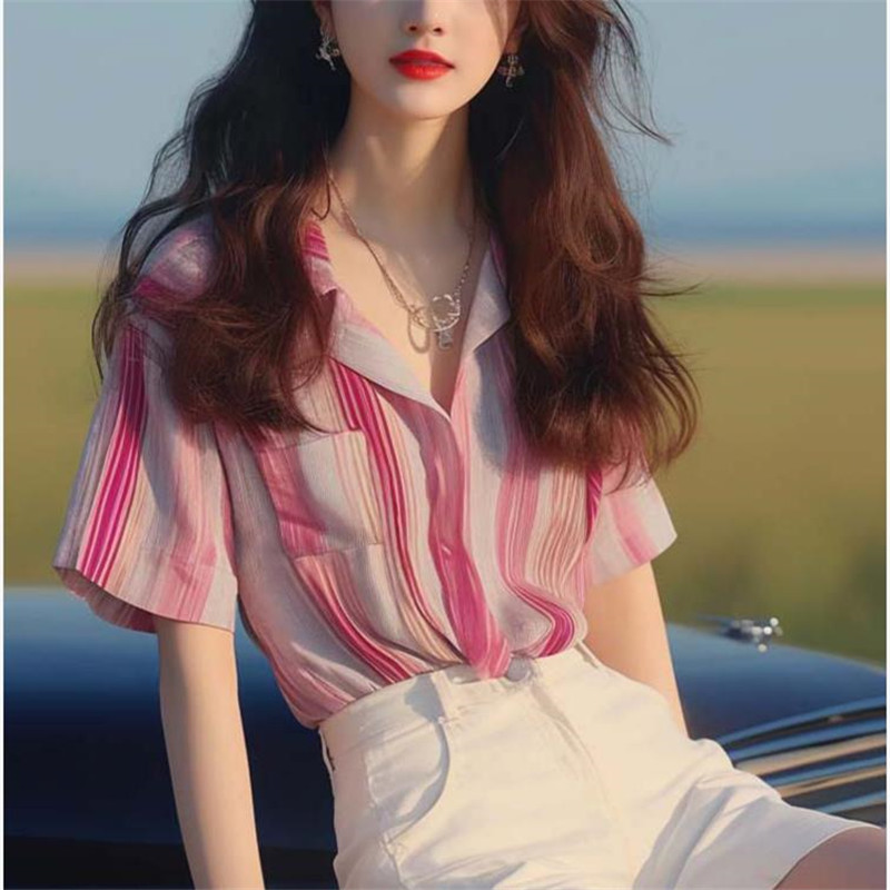 | nameOriginal | 2024 Summer New Style Small Shirt French Unique Chic Top French Elegant Chanel Style Pink Striped Shirt for Women |