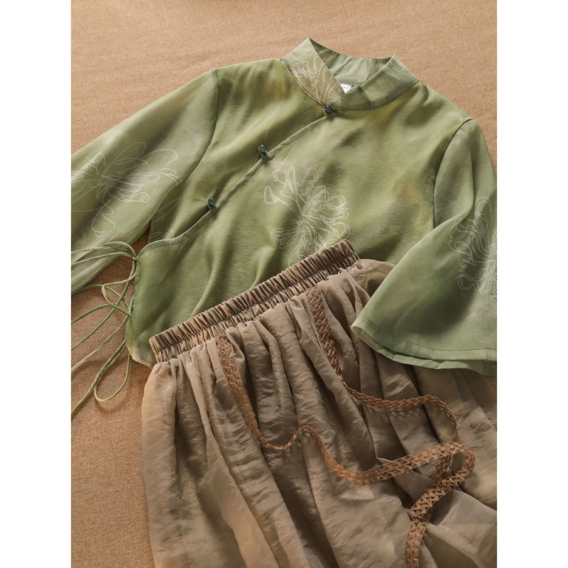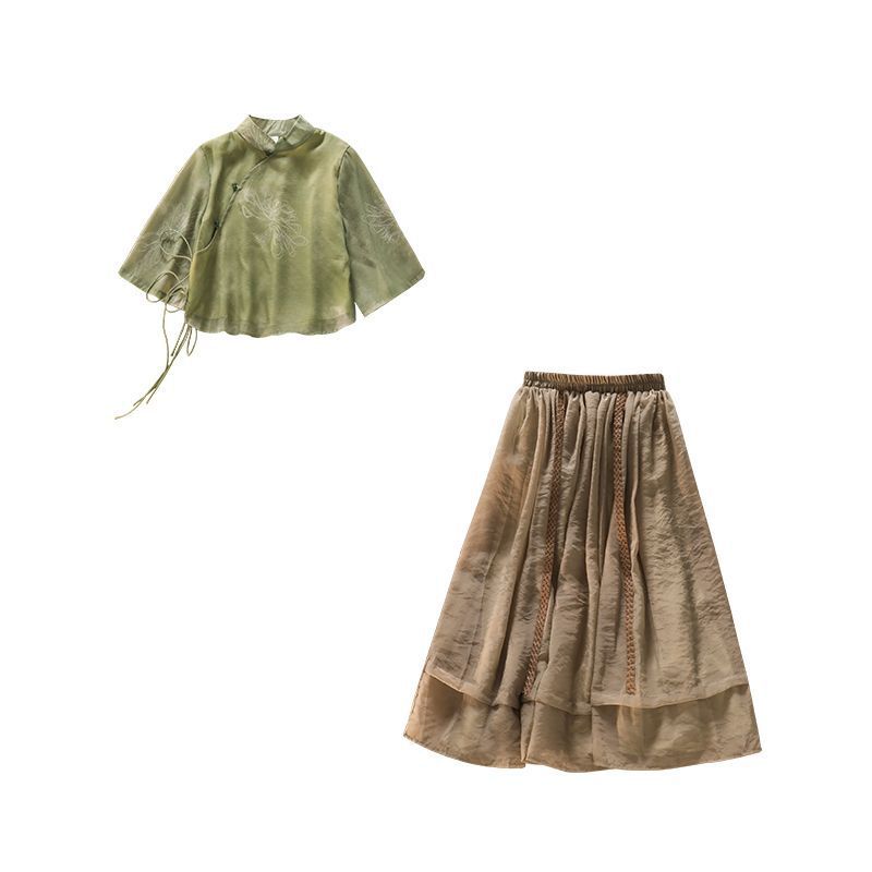 nameOriginal | 2024 Summer New Style Socialite Gentle Style New Chinese Retro Modified Cheongsam Top Women's Skirt National Style suit |