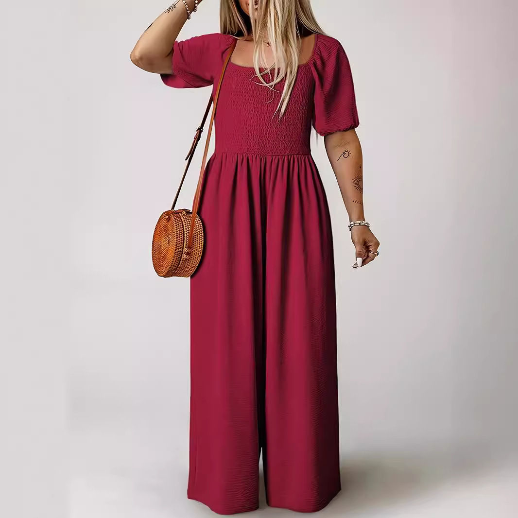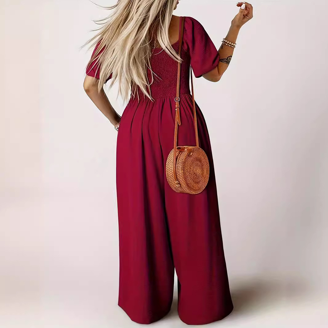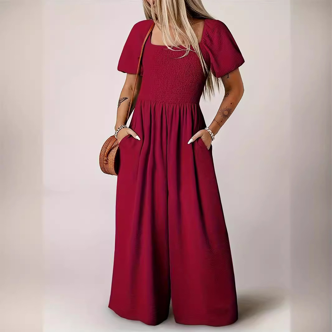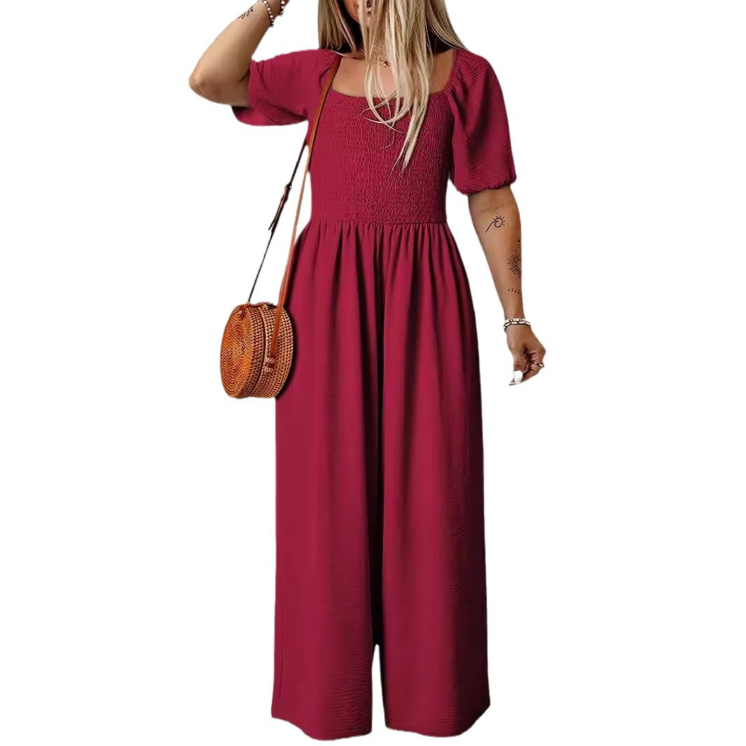 | nameOriginal | 2024 Summer New Style Square Collar Short-sleeved Jumpsuit Women's European and American Solid Color Casual Loose High Waist Wide-leg Pants for Women |