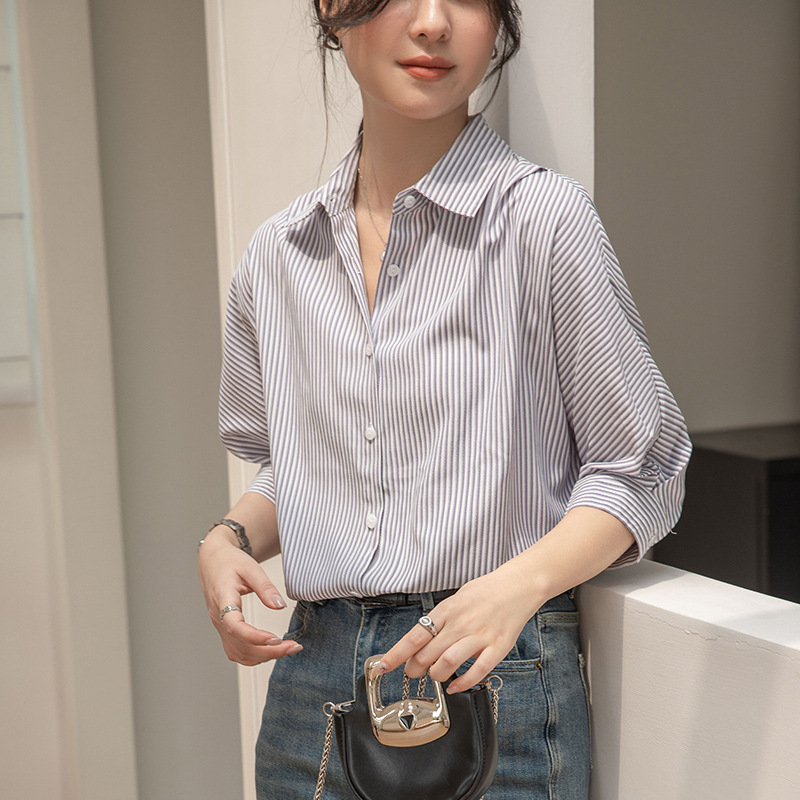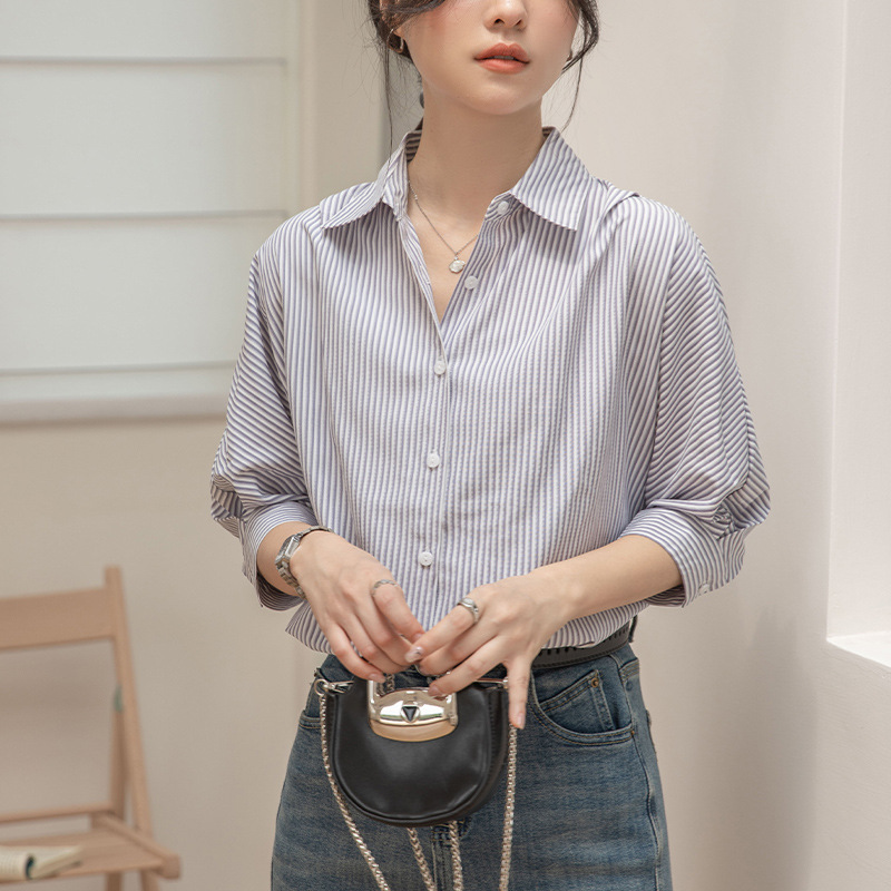 | nameOriginal | 2024 Summer New Style Striped Shirt Top Women's Design Sense Niche Casual Loose Korean Style Seven-Sleeve Shirt |