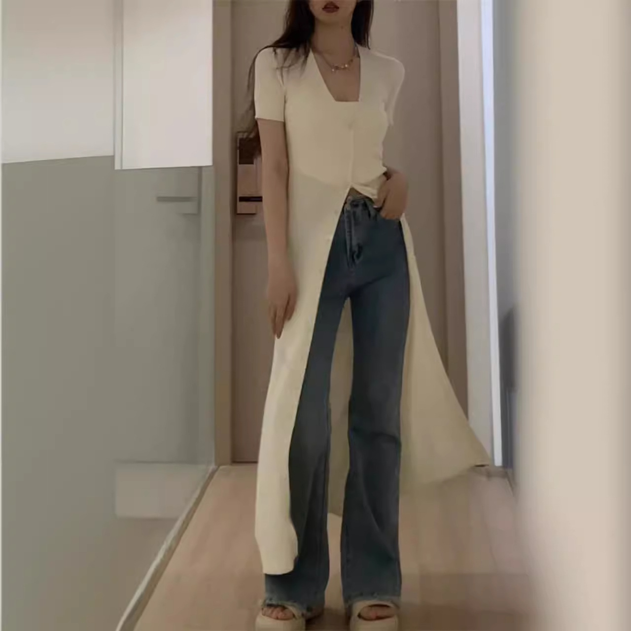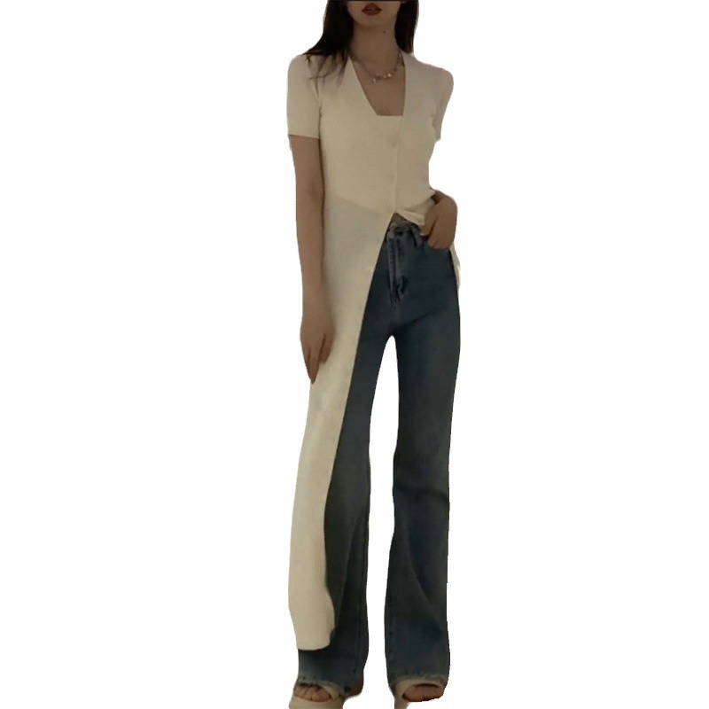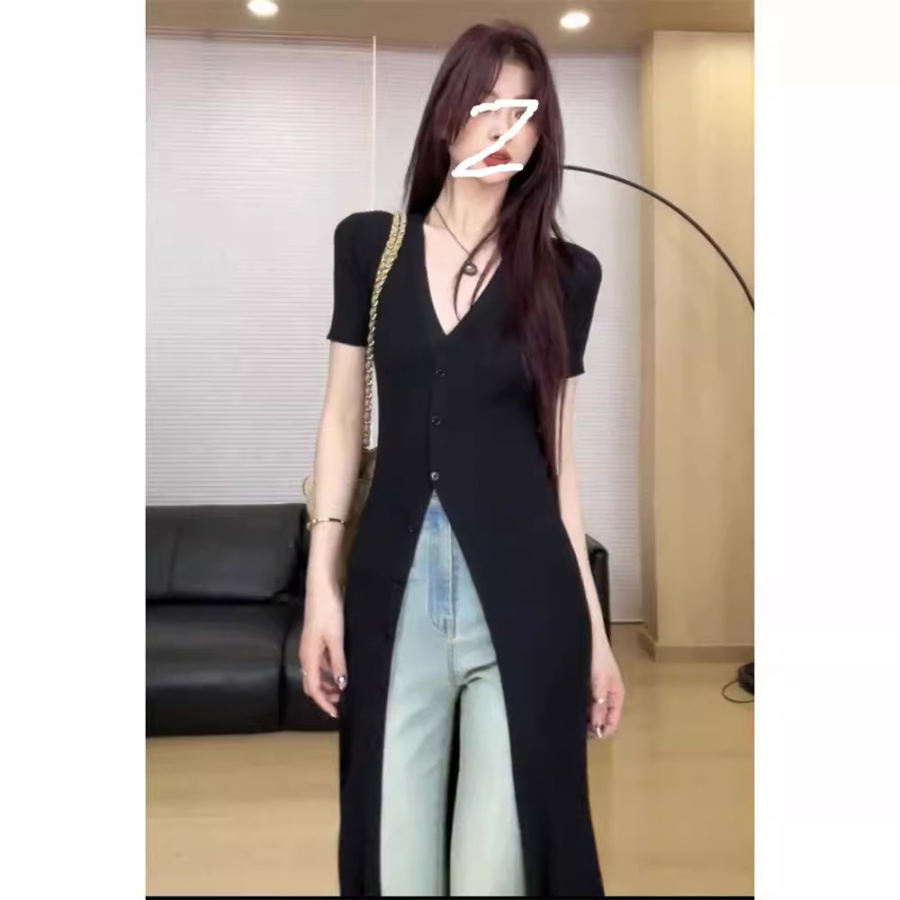 2024 Summer New Style V-Neck Slim-Fit Slimming Single-breasted Long Knitted Sweater Cardigan Long dress Women