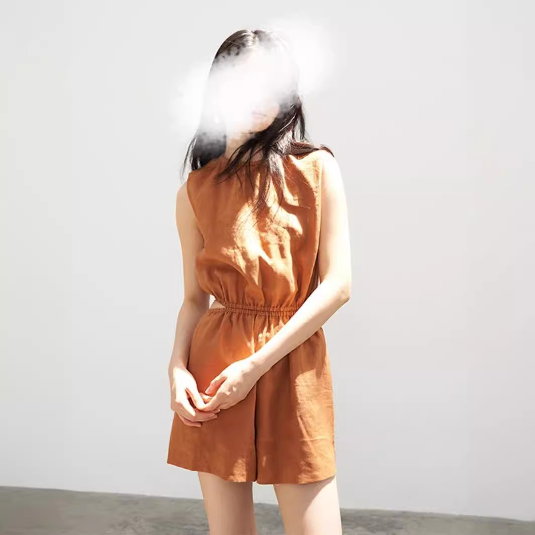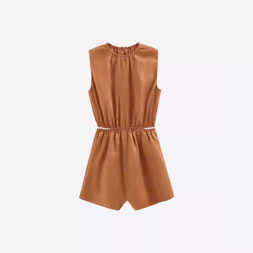 | nameOriginal | 2024 Summer New Tencel Linen Vacation Style Hollow-out Waist Elegant Sleeveless Round Neck Pants for Women |