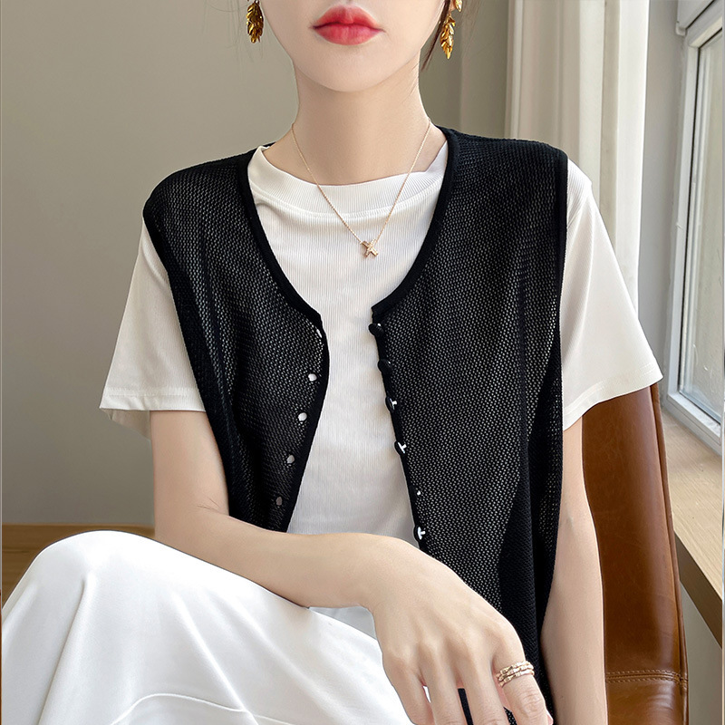 | nameOriginal | 2024 Summer New Tencel Lyocell Crewneck Sweater Vest Cardigan Women's Loose All-match Hollow Waistcoat |