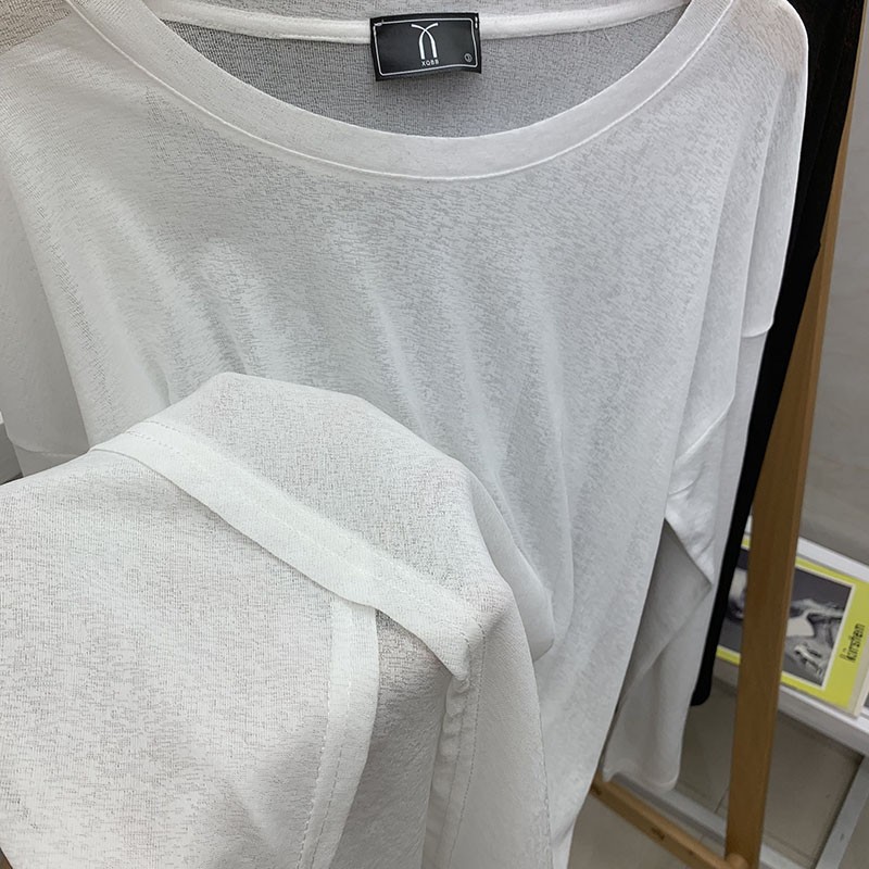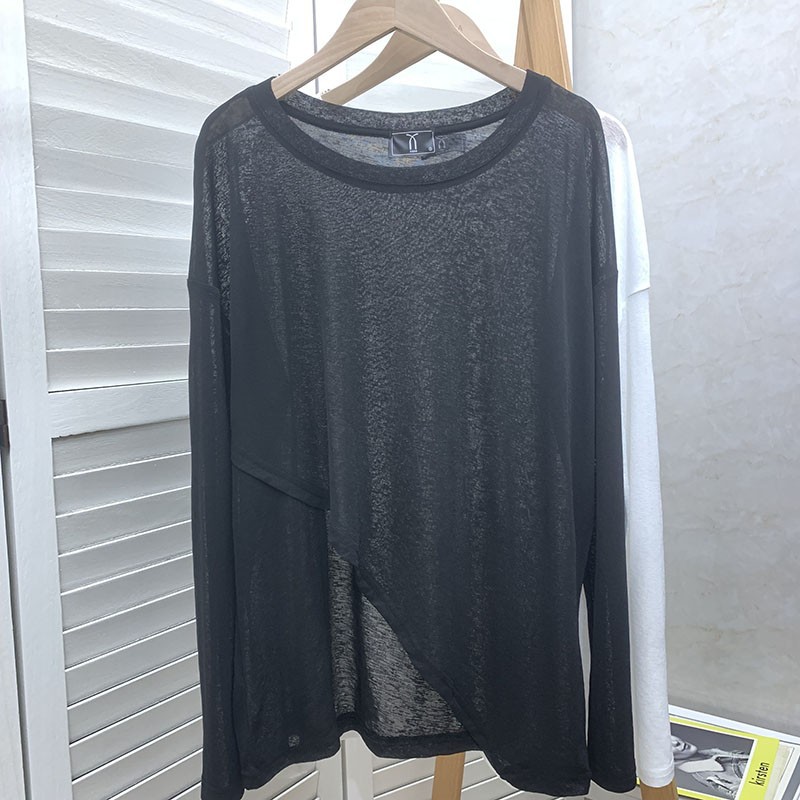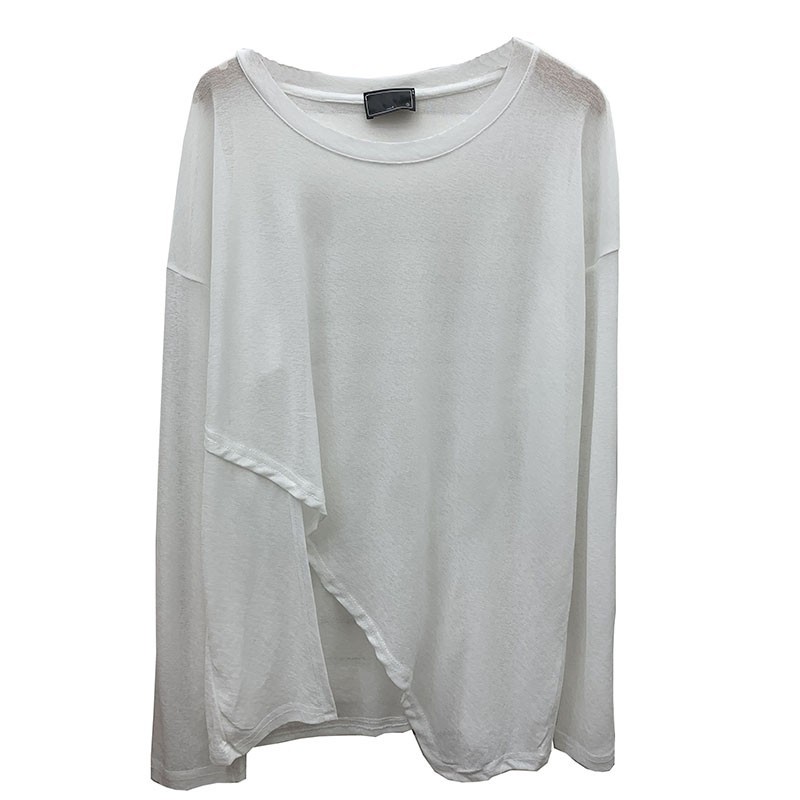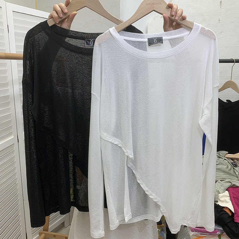 | nameOriginal | 2024 summer new thin western style split irregular sunscreen long sleeve loose version solid color T-shirt women's top |