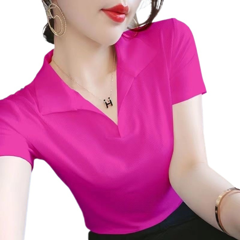 | nameOriginal | 2024 Summer New Threaded Short-sleeved Shirt Women's Loose plus size Stretch Korean-style Collar Solid Color Top |