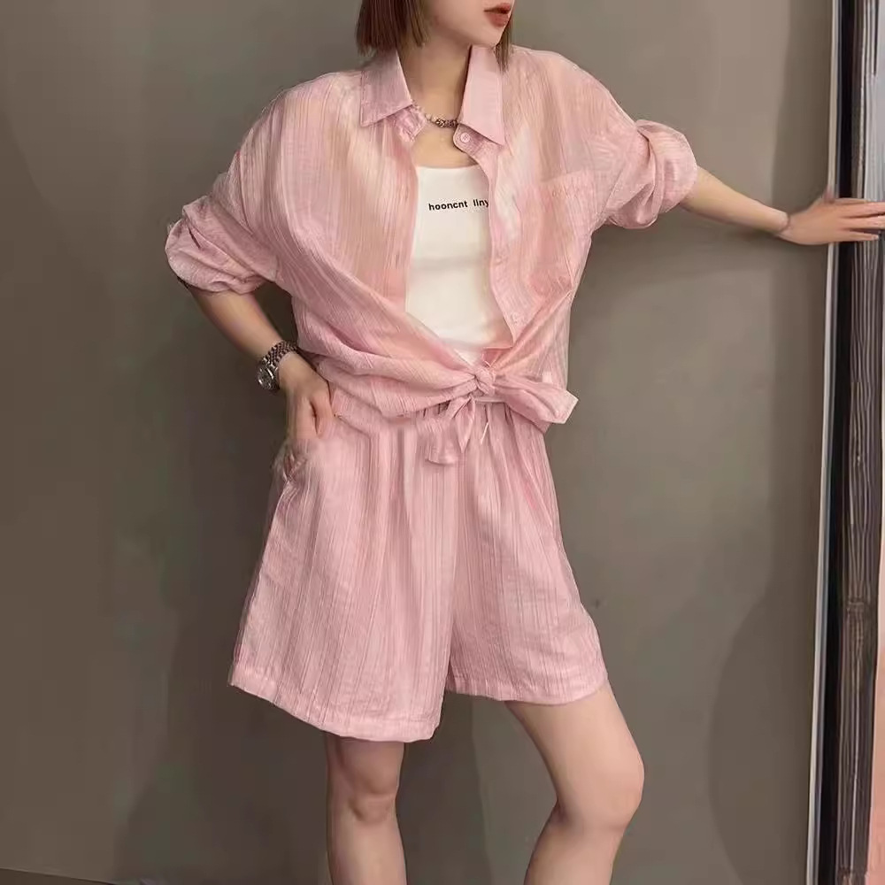 | nameOriginal | 2024 Summer New Two-piece Sunscreen Clothing Women's Thin Long-sleeved Breathable Fashion suit Shirt Shorts Top |