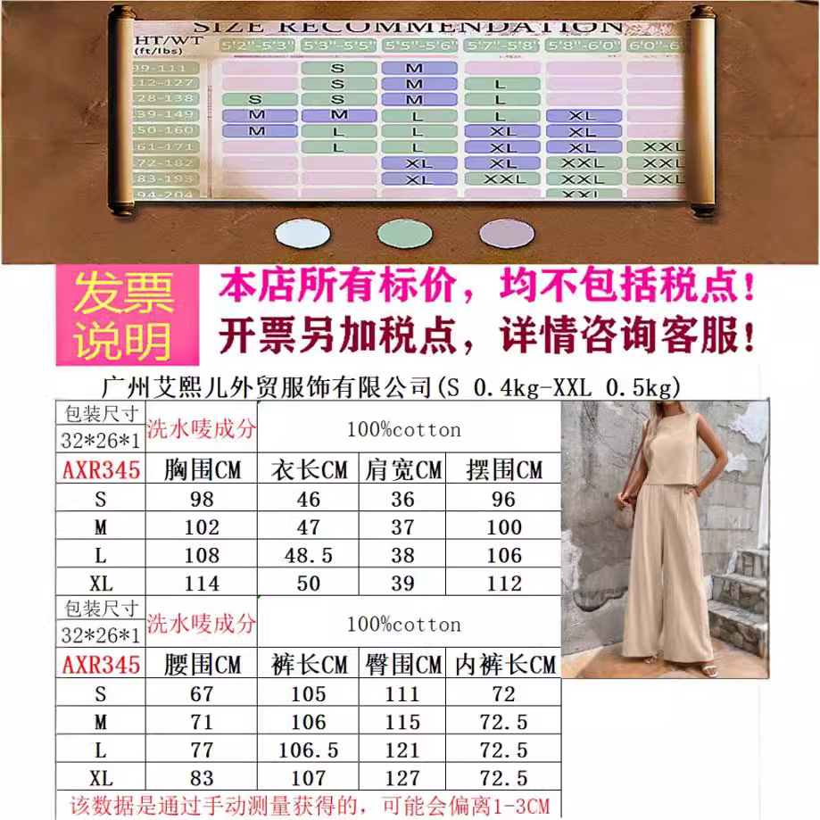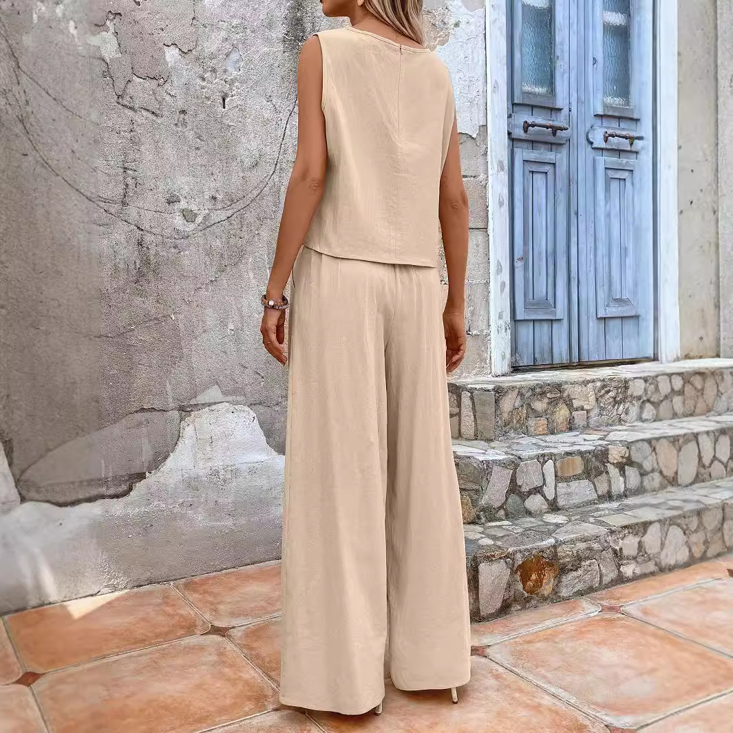 | nameOriginal | 2024 Summer New Two-piece Women's European and American Fashion All-match Loose Pullover Round Neck Casual Cotton suit Women |