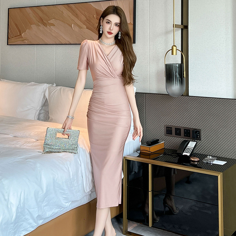 | nameOriginal | 2024 Summer New Women's Clothing French V-neck Elegant Slim-fit Slimming Short-sleeved dress Sexy Hip Dress 30167 |