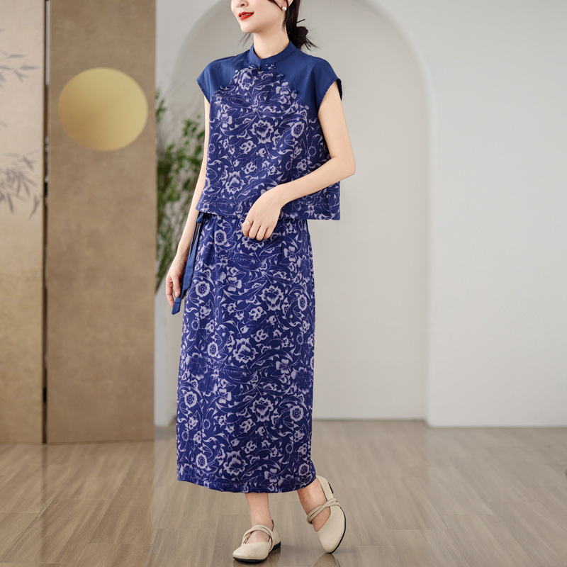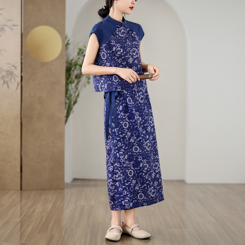 | nameOriginal | 2024 summer new women's clothing modified cheongsam cotton and linen suit new Chinese style stitching top hip overskirt |