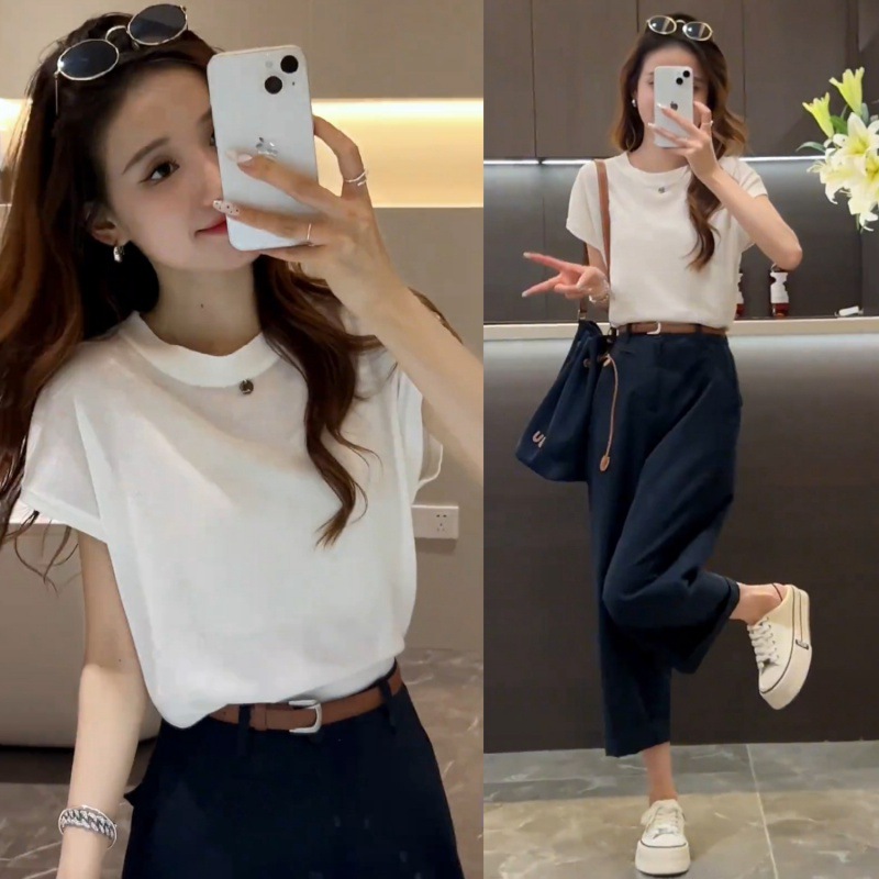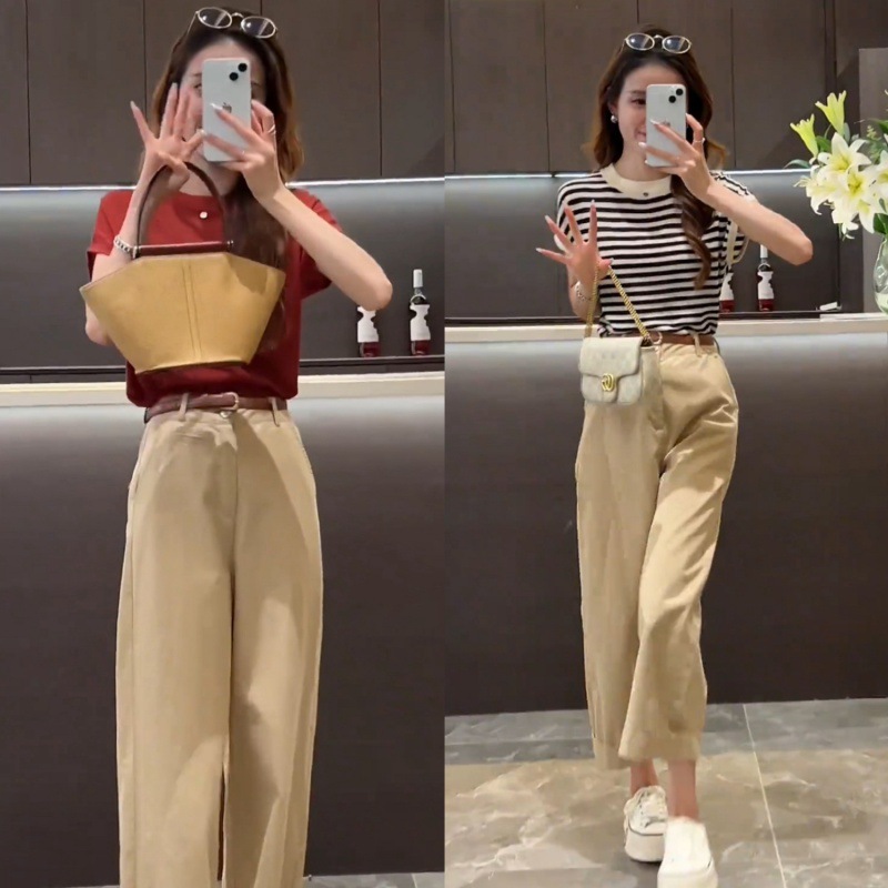 | nameOriginal | 2024 Summer New Women's Knitted Loose Striped Slim Look All-match Top Solid Color Loose Simple Nine-point Pants Casual Pants |