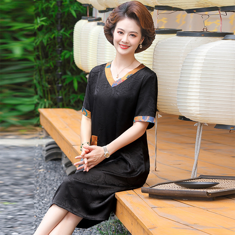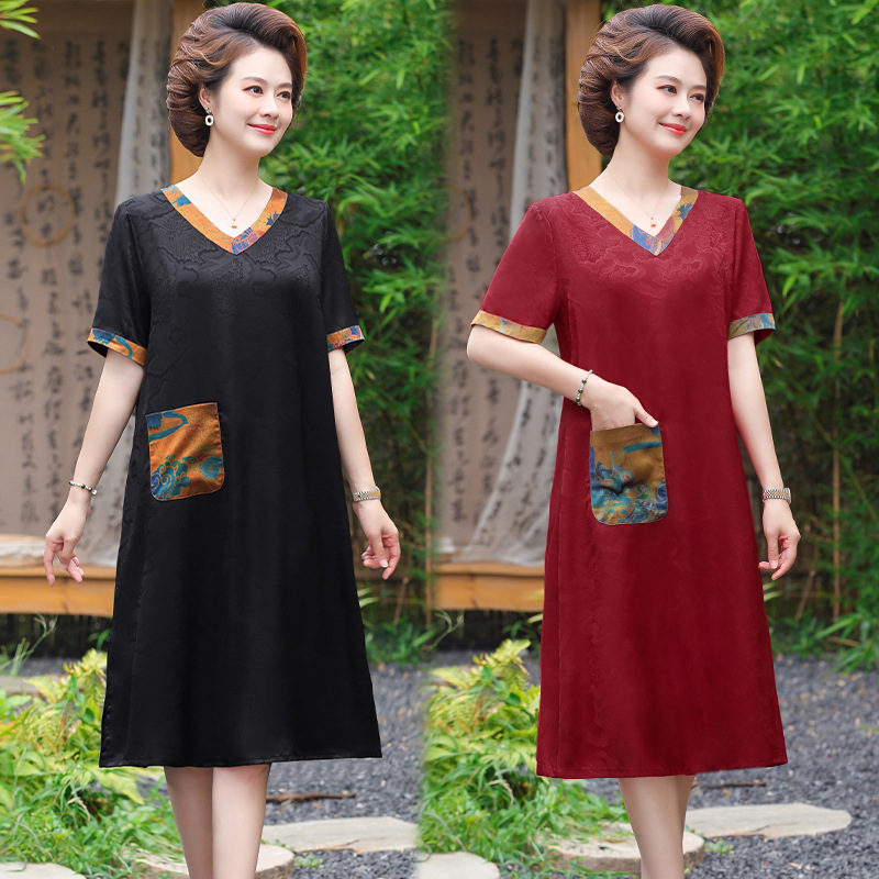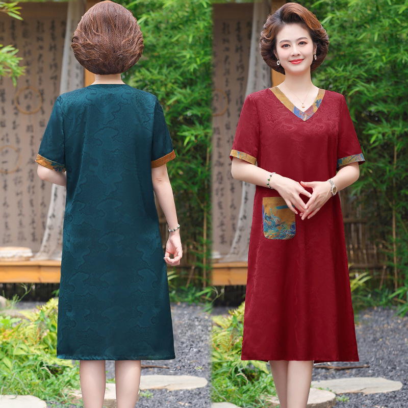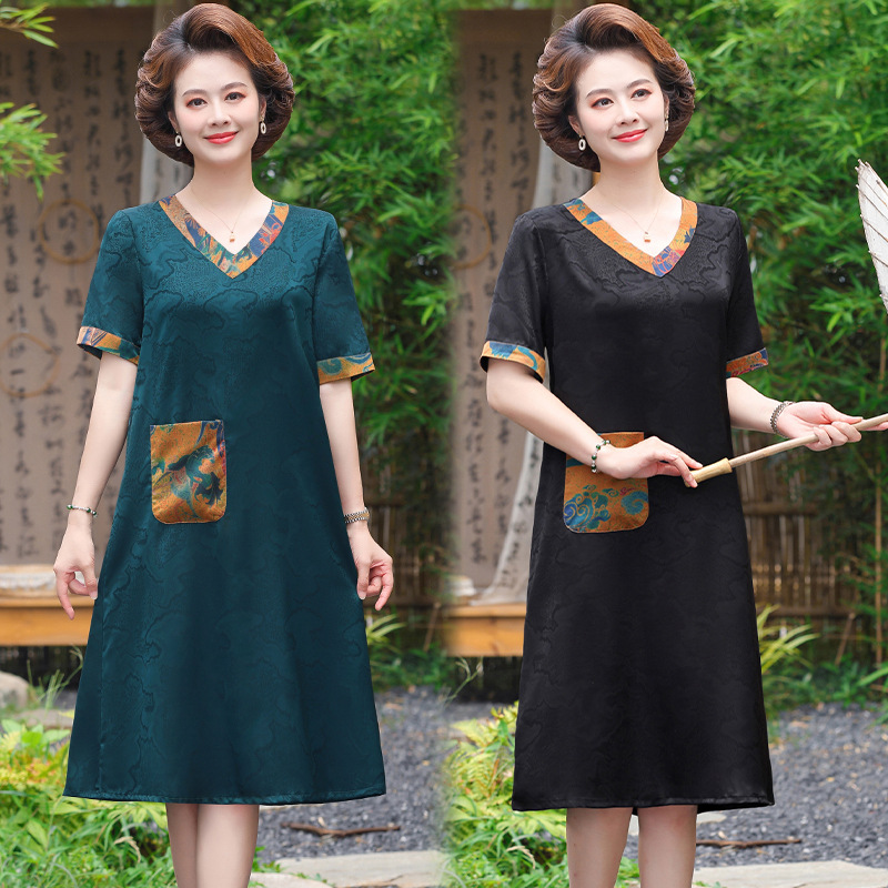 | nameOriginal | 2024 Summer New Xiangyun Yarn dress Mother's High-end Temperament Printed Skirt Middle-aged and Elderly Skirt |