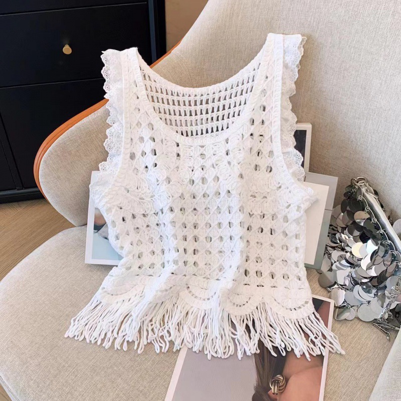 | nameOriginal | 2024 Summer Niche Design Personalized All-match Outer Wearing Knitted Hollow Short Tassel Sleeveless Vest Top |