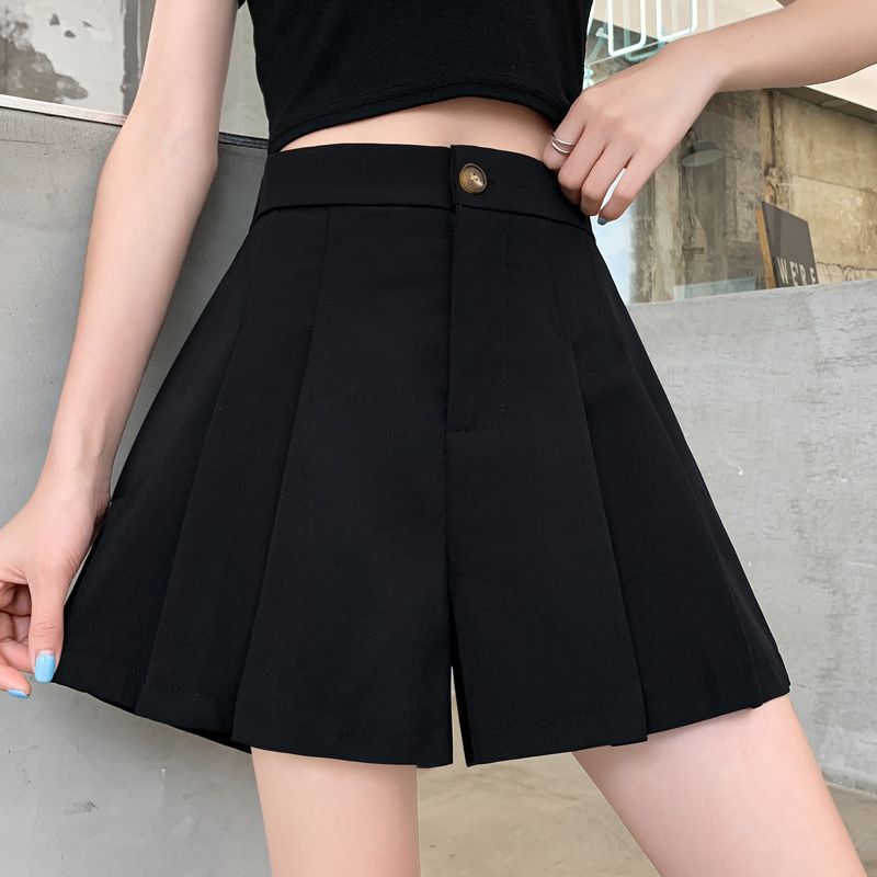 2024 Summer plus size chubby girl Wide Pants Women's High Waist Outer Wear Slimming A- line Pleated Shorts Black Casual Hot Pants