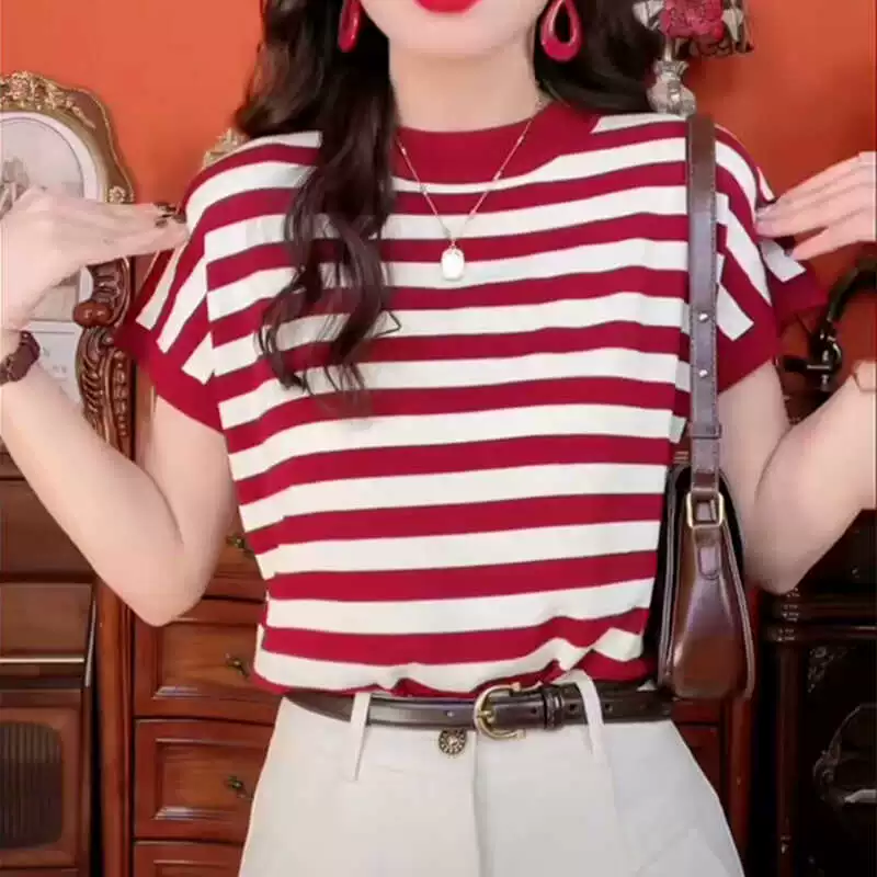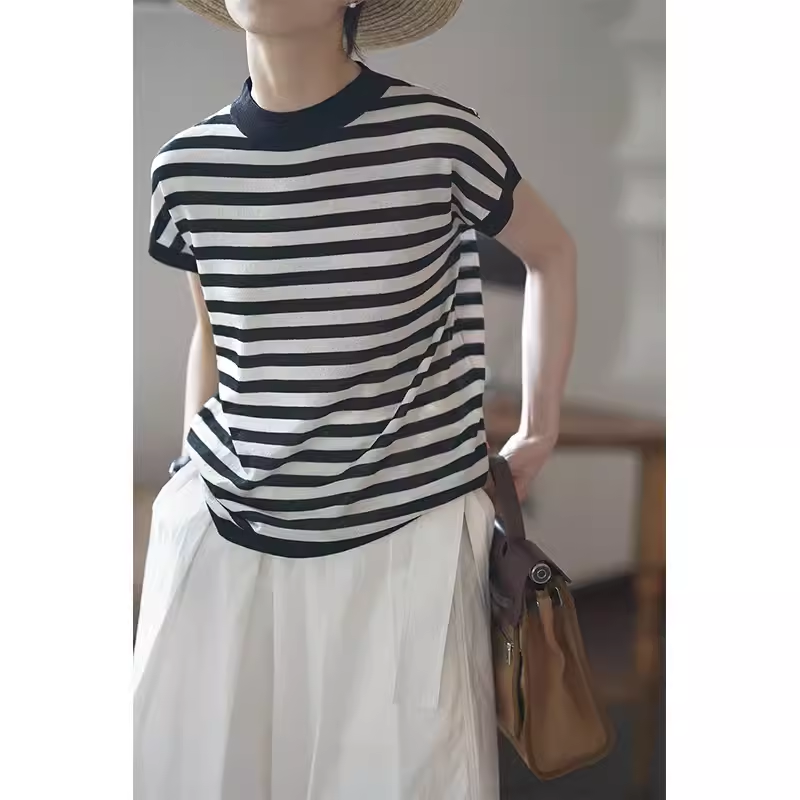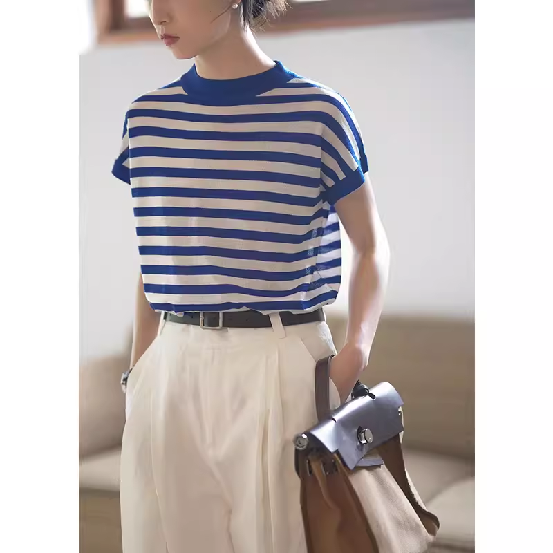 | nameOriginal | 2024 summer retro contrasting round neck short-sleeved sweater |