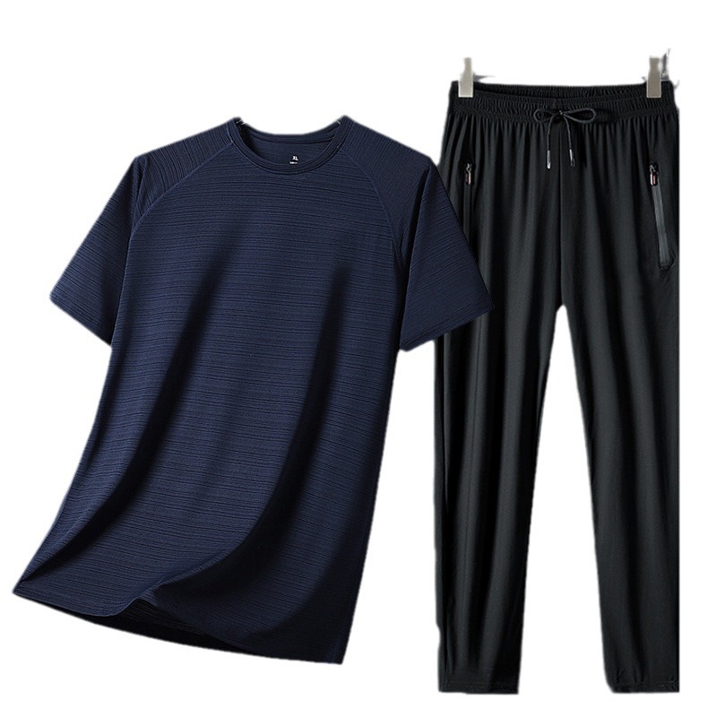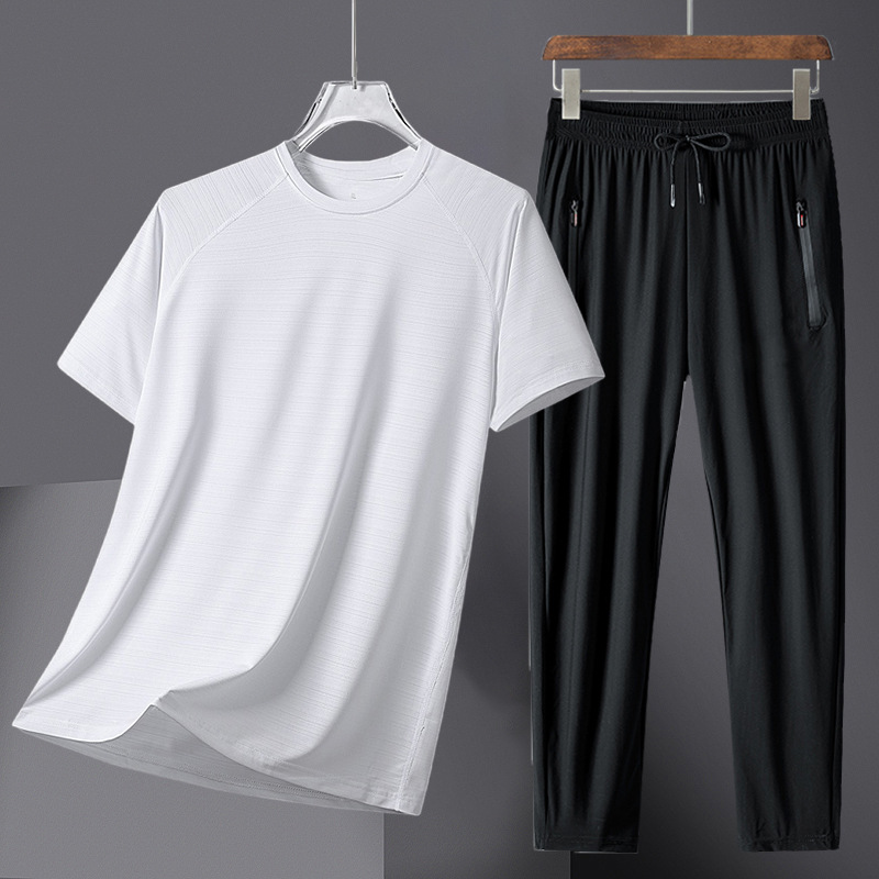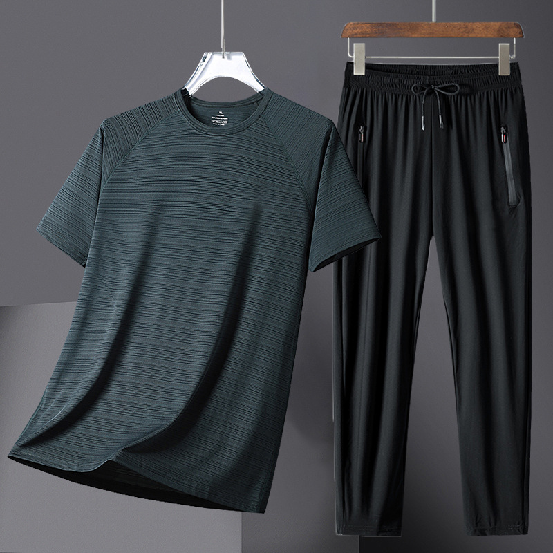 | nameOriginal | 2024 Summer Short-sleeved Crewneck T-shirt Trousers Casual Sports Quick-drying Middle-aged Dad Ice Silk Sports suit Men |