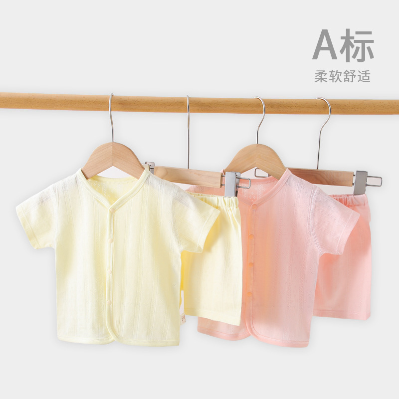 2024 Summer Short-sleeved Shorts Two-piece Set Light and Thin Boneless Breathable Air-conditioning Clothing Infant Suit Solid Color Simple Short