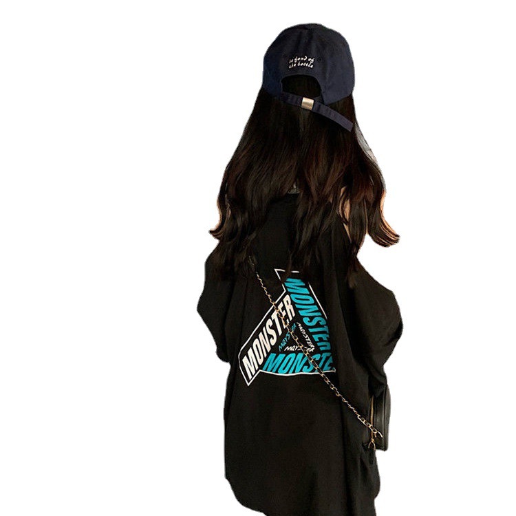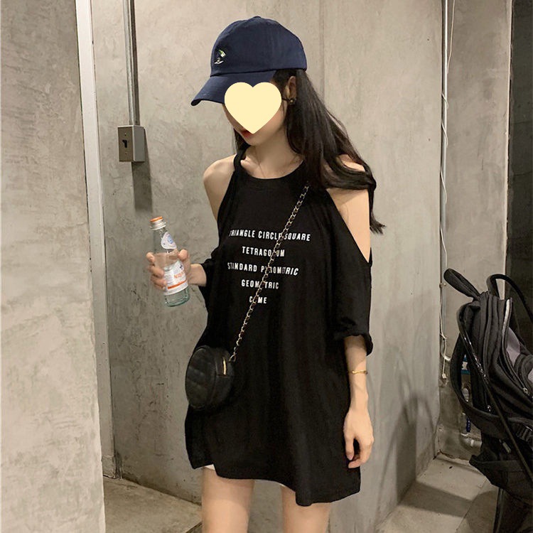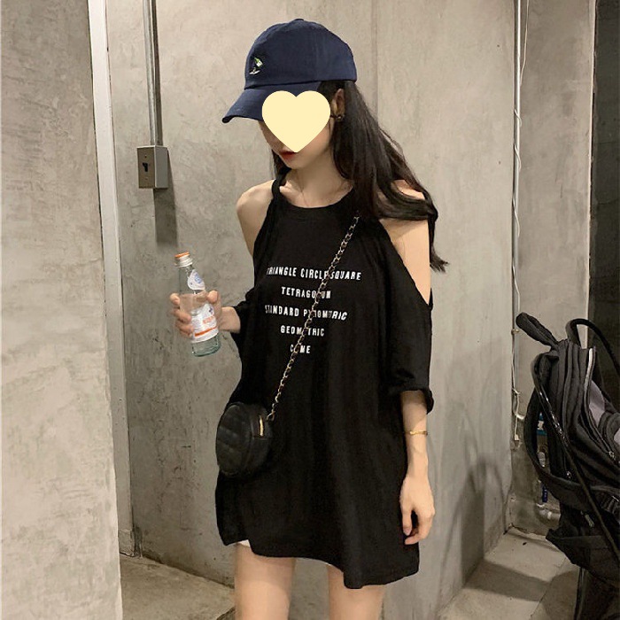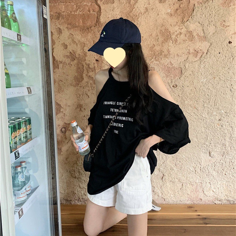 2024 Summer Short-sleeved T-shirt Women's Loose Internet Celebrity Strange Design Shoulder Clavicle Top Trendy Foreign Trade
